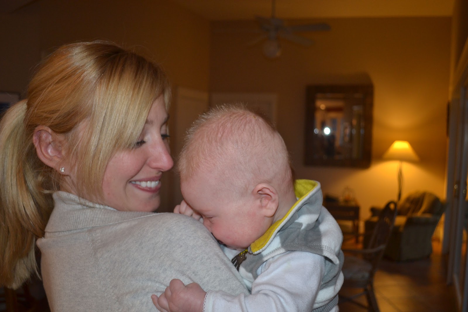 10:30 -11 am: Ashton is half asleep in my arms after eating, which usually happens.