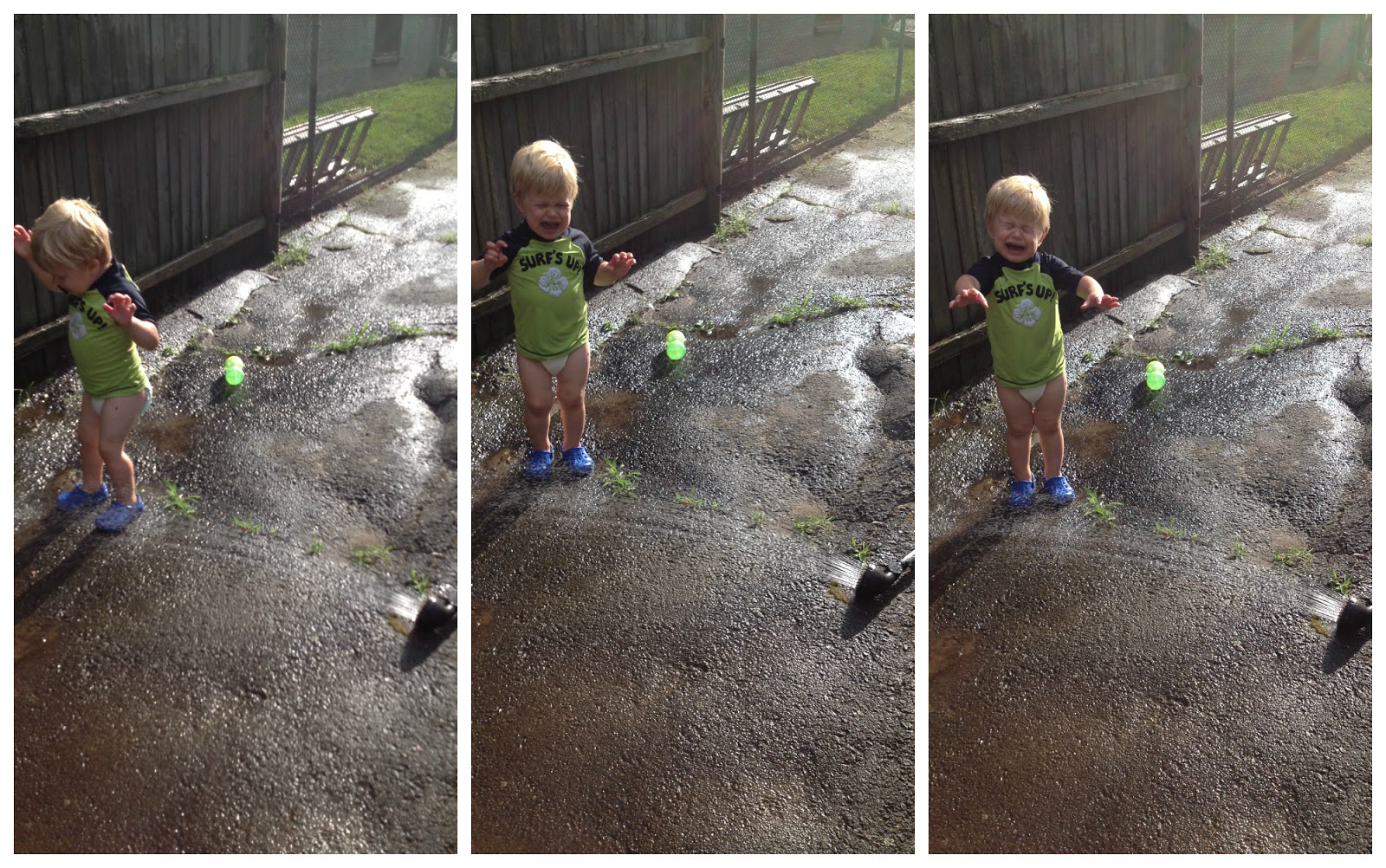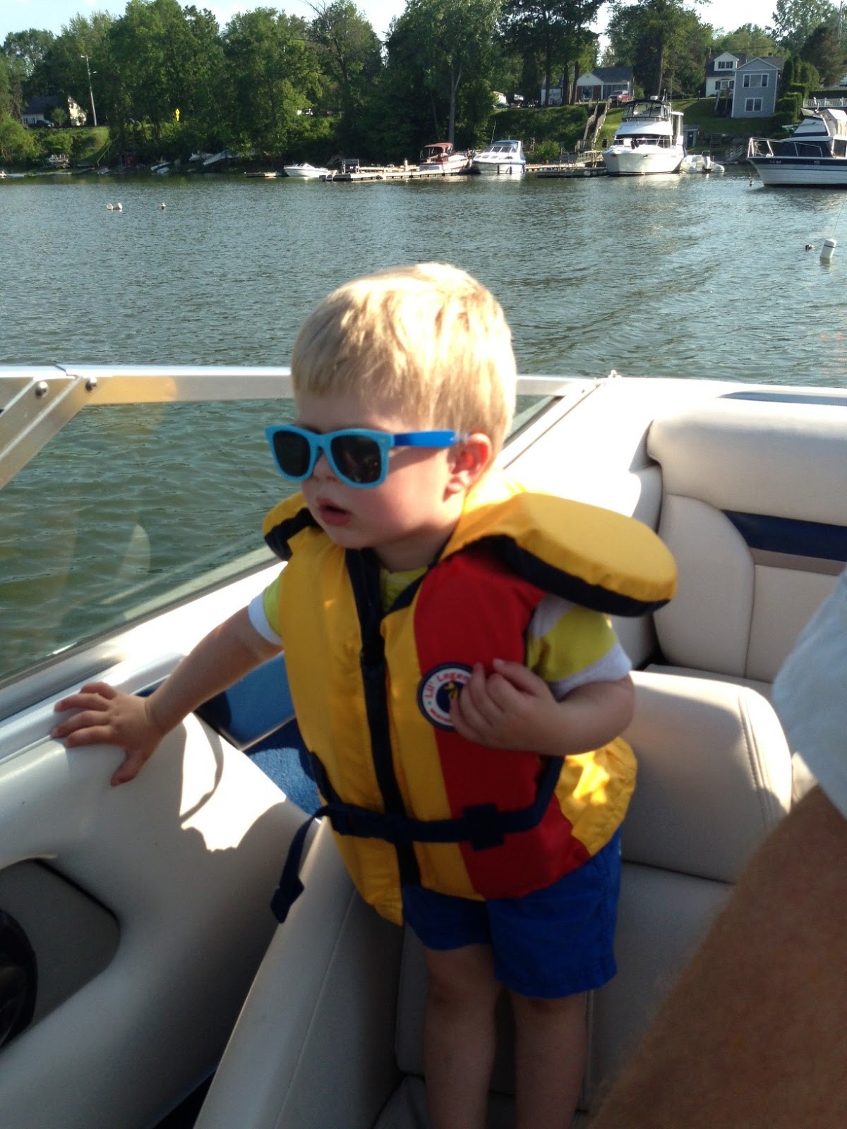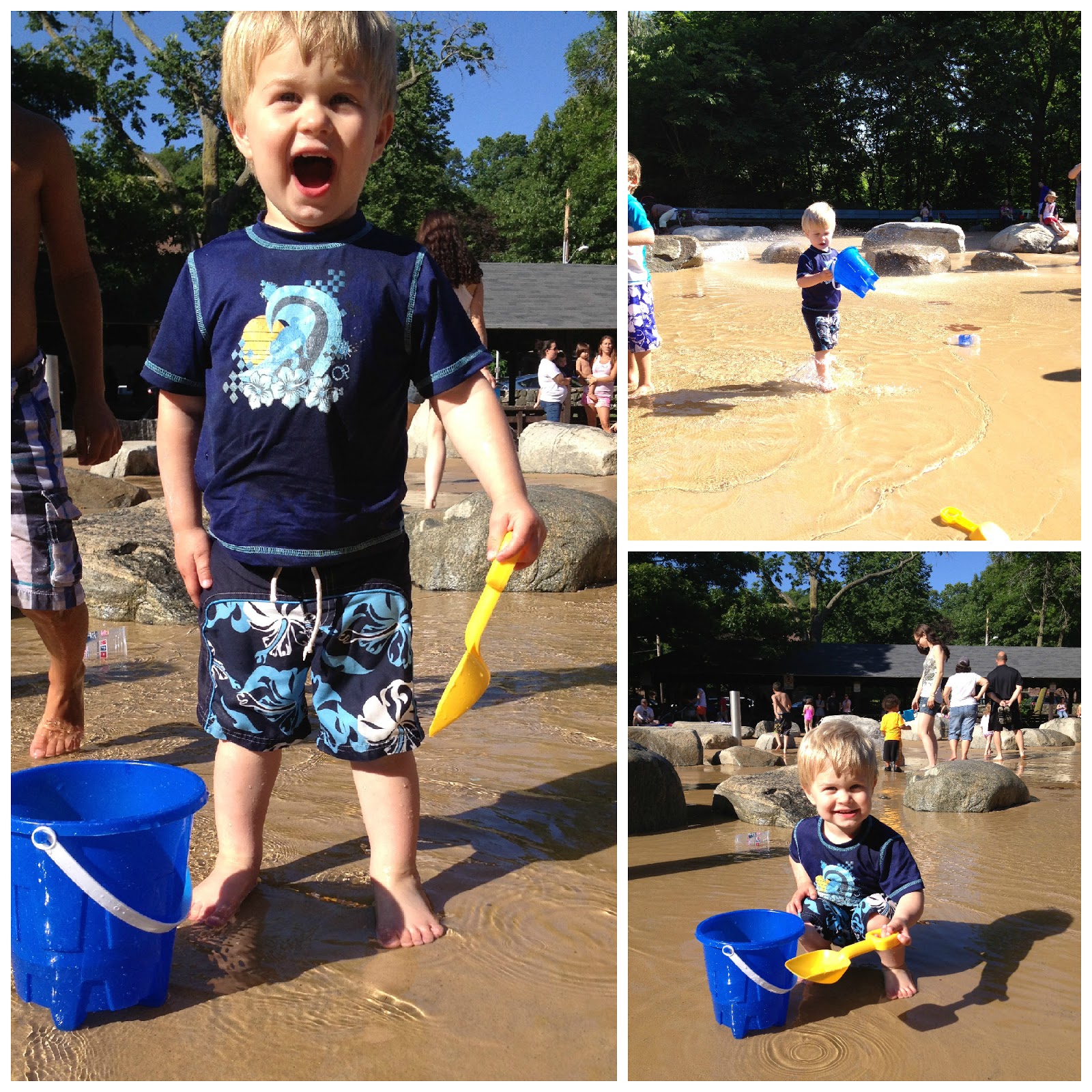 He is showing improvement every week with his speech. He probably says about 20-25 words (still a low count for his age) and he maxes out at three in a row. Most popular right now: “One more….CRACKER!” He says this regardless of whether there are actually crackers around. He has also started to repeat the last sound he hears in a sentence. So if I tell him, “Just a minute please” he’ll immediately echo “Pees”. On Block Island a couple weeks ago, I said, “No, that’s Daddy’s beer” and he followed with “bee-er.” I do recognize new sounds almost daily but pronunciation is still not great and there is a lot of frustration when he can’t communicate what he wants. So we are still in Early Intervention every Wednesday but we are starting to get some cute “little kid moments” that show just how differently they actually see the world. For example, yesterday at the park (where there were previously lots of bees), there were almost none except for a few dead ones (you know, the giant fuzzy kind). We were over in that area and Ashton started pointing excitedly at the ground, “Bee! Bee, help! Help, bee, help!” and it took me a second and then I realized, “Ashton, are you saying the bee needs help because he isn’t moving? Does he need to fly?” and he looked right at me and solemnly nodded. Well I had no idea how to handle that one. Add to the list, “Read up on how to tell your children about death.” So I told him the bee was sleeping and that it would want us to go on the swings until it woke up. Another example was when we were at the beach and we were standing at the water’s edge with our toes in. I said, “Wow Ashton, do you see the waves?” He looked up at me and then back at the ocean and then reached his little arm out and started waving. I nearly died laughing, I mean of course he doesn’t know that one word can mean two things yet. But it was an unexpected response haha. He has also started to sing – he will repeat exactly if I sing “La la la la” and also has freestyled a couple times although no discernible words or melodies, just as he plays by himself. Like a background soundtrack.