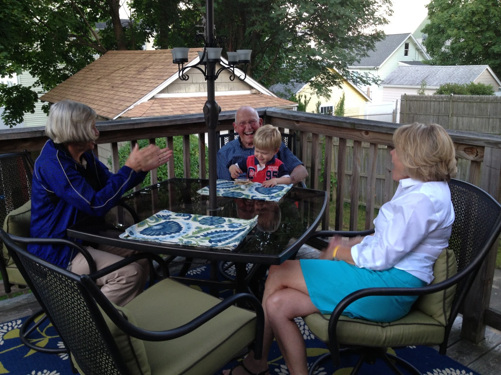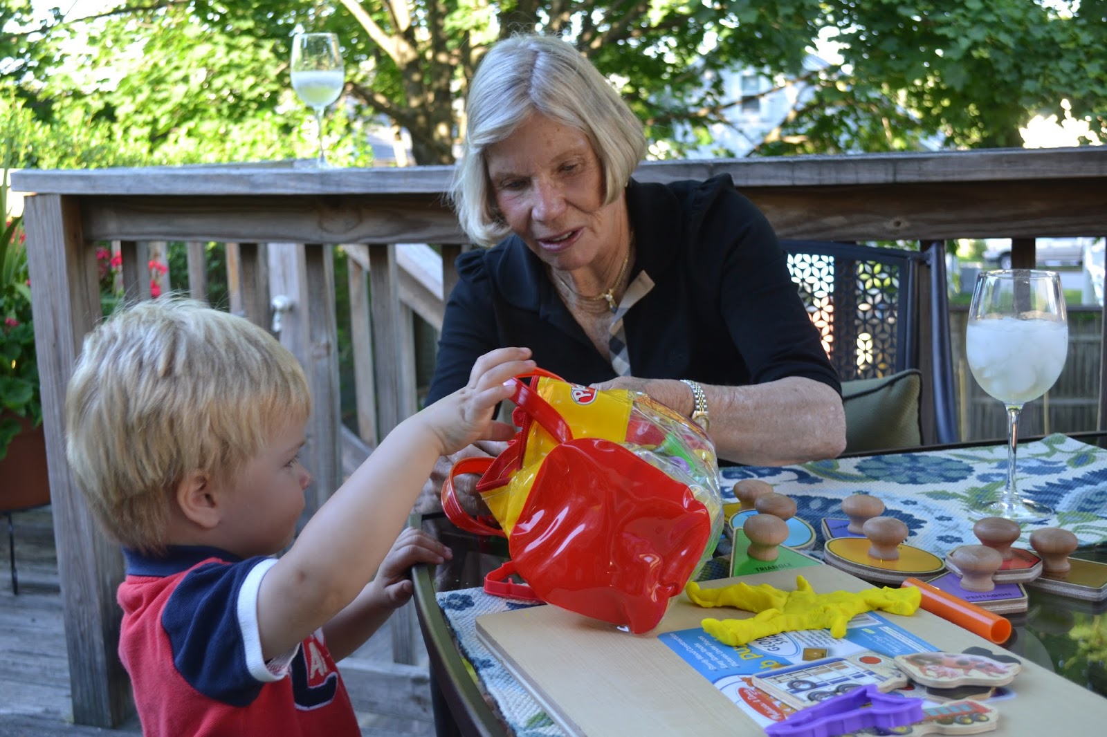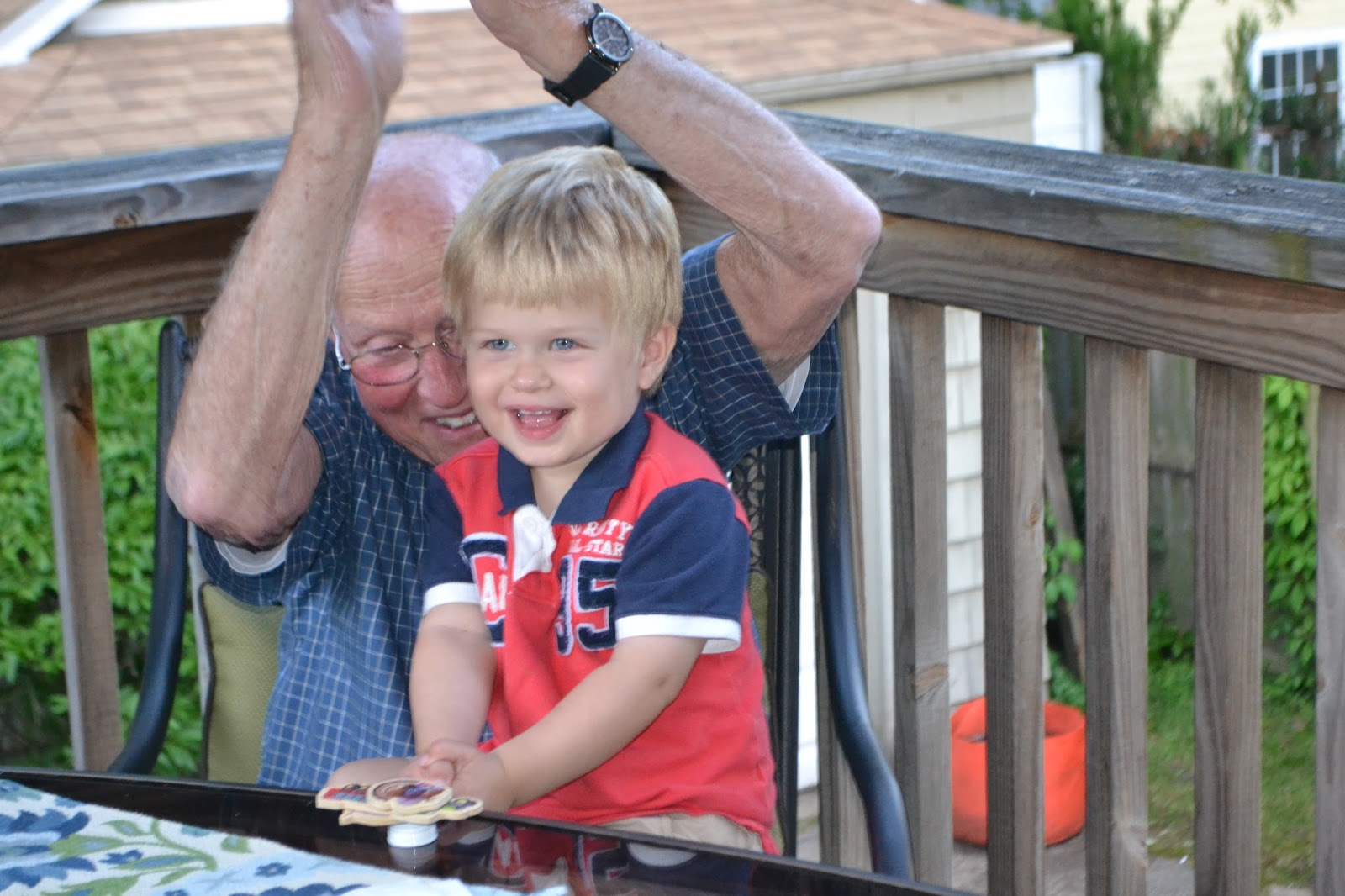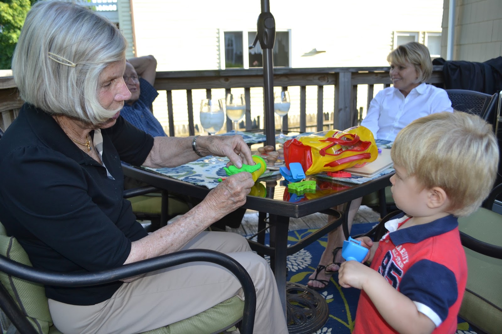 He is showing improvement every week with his speech. He probably says about 20-25 words (still a low count for his age) and he maxes out at three in a row. Most popular right now: “One more….CRACKER!” He says this regardless of whether there are actually crackers around. He has also started to repeat the last sound he hears in a sentence. So if I tell him, “Just a minute please” he’ll immediately echo “Pees”. On Block Island a couple weeks ago, I said, “No, that’s Daddy’s beer” and he followed with “bee-er.” I do recognize new sounds almost daily but pronunciation is still not great and there is a lot of frustration when he can’t communicate what he wants. So we are still in Early Intervention every Wednesday but we are starting to get some cute “little kid moments” that show just how differently they actually see the world. For example, yesterday at the park (where there were previously lots of bees), there were almost none except for a few dead ones (you know, the giant fuzzy kind). We were over in that area and Ashton started pointing excitedly at the ground, “Bee! Bee, help! Help, bee, help!” and it took me a second and then I realized, “Ashton, are you saying the bee needs help because he isn’t moving? Does he need to fly?” and he looked right at me and solemnly nodded. Well I had no idea how to handle that one. Add to the list, “Read up on how to tell your children about death.” So I told him the bee was sleeping and that it would want us to go on the swings until it woke up. Another example was when we were at the beach and we were standing at the water’s edge with our toes in. I said, “Wow Ashton, do you see the waves?” He looked up at me and then back at the ocean and then reached his little arm out and started waving. I nearly died laughing, I mean of course he doesn’t know that one word can mean two things yet. But it was an unexpected response haha. He has also started to sing – he will repeat exactly if I sing “La la la la” and also has freestyled a couple times although no discernible words or melodies, just as he plays by himself. Like a background soundtrack.
