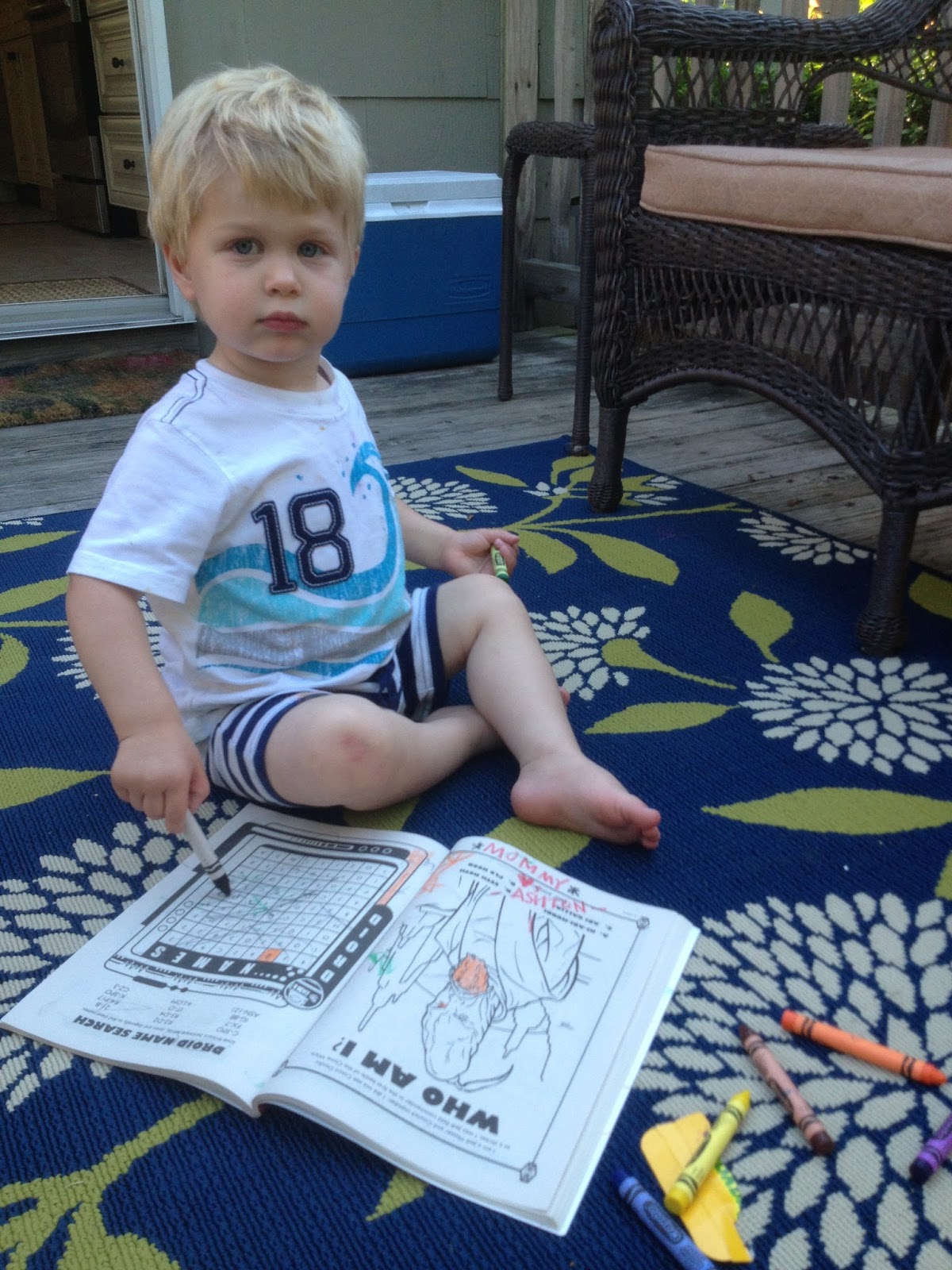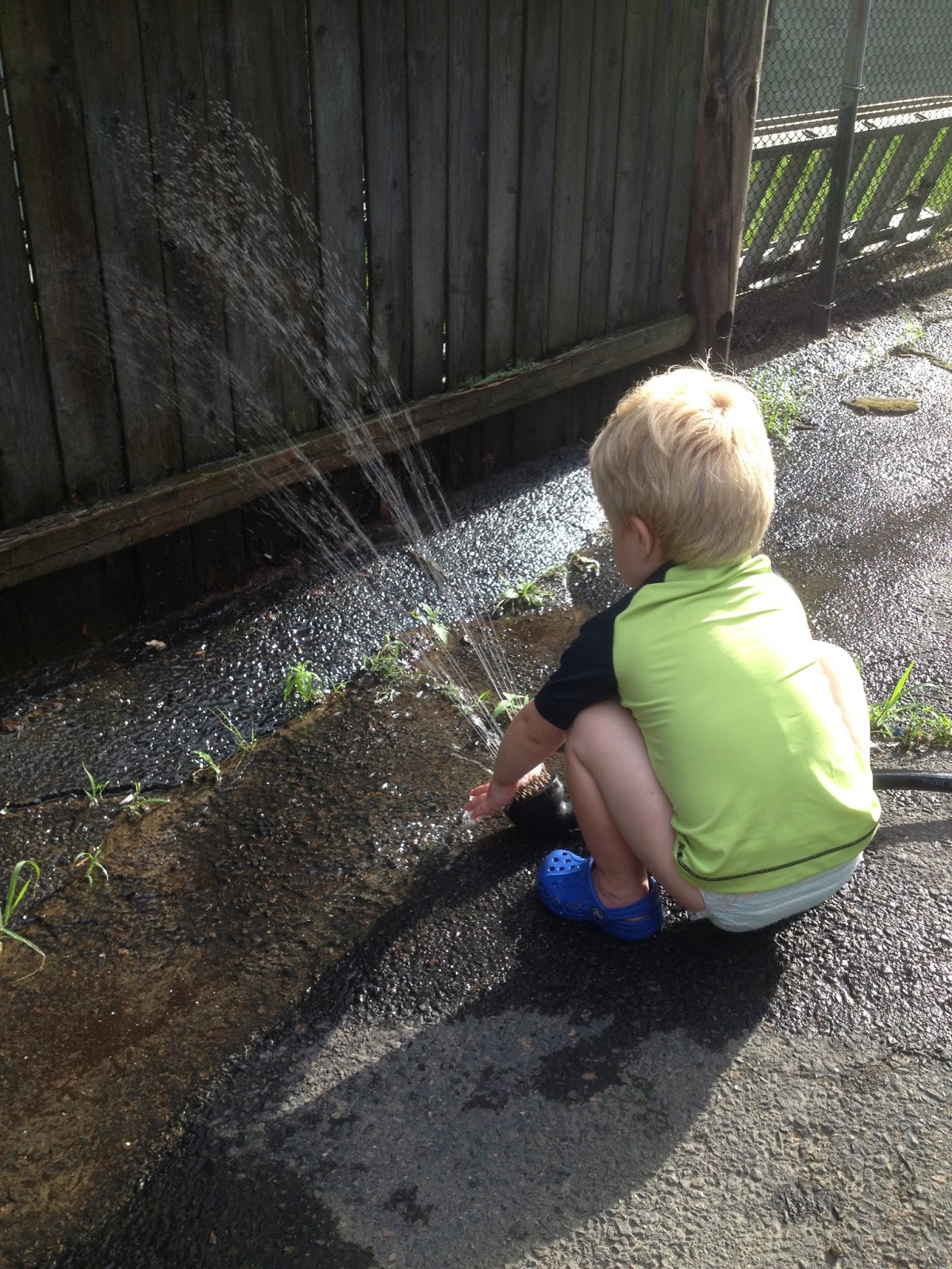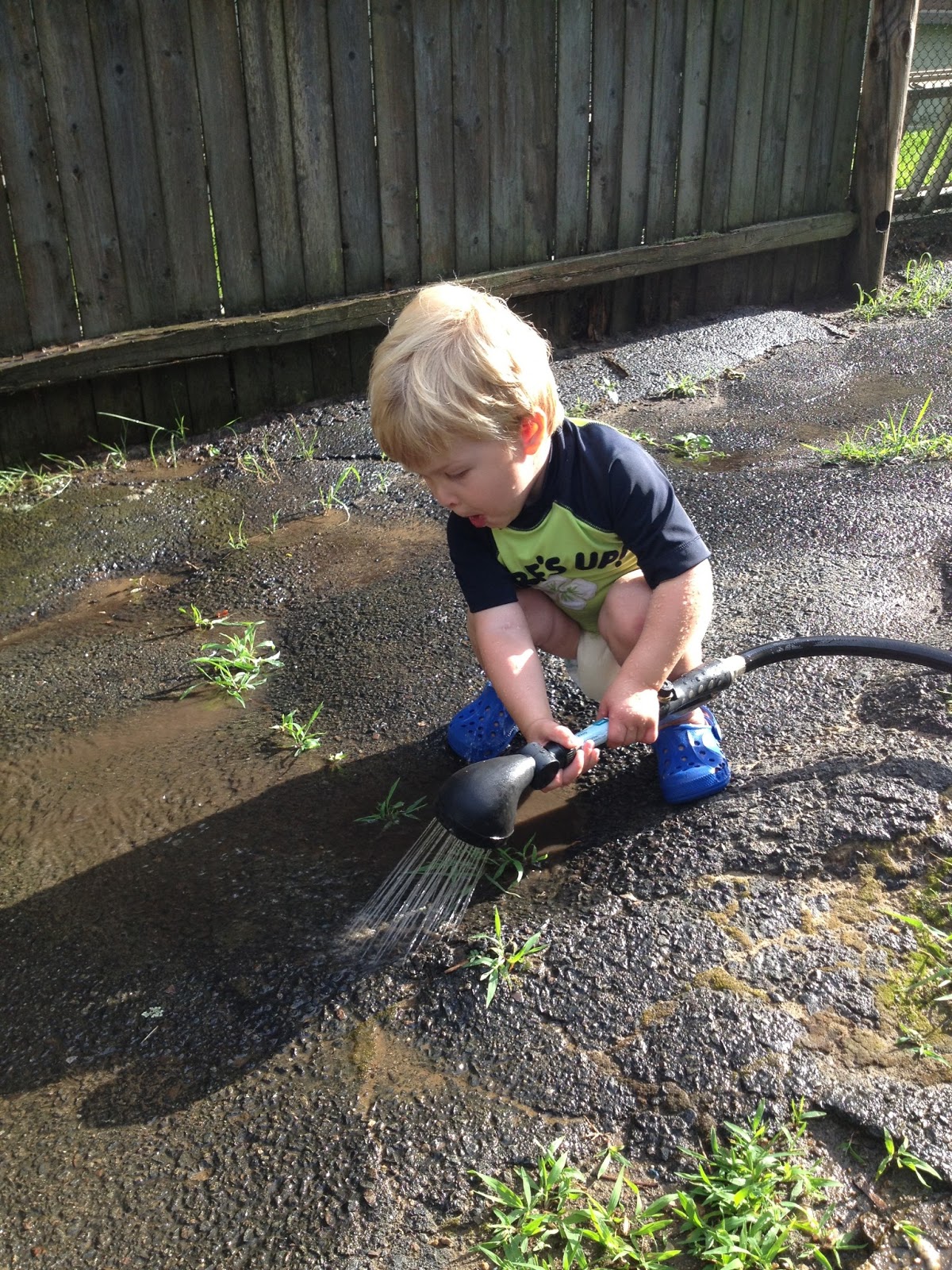 Other than that, we still spend most of our free time playing, walking around the block, and generally being outside. Both knees are still in various stages of scabs and when I put him in the tub, I don’t know where the dirt ends and the bruises begin, but he’s a happy little boy 🙂