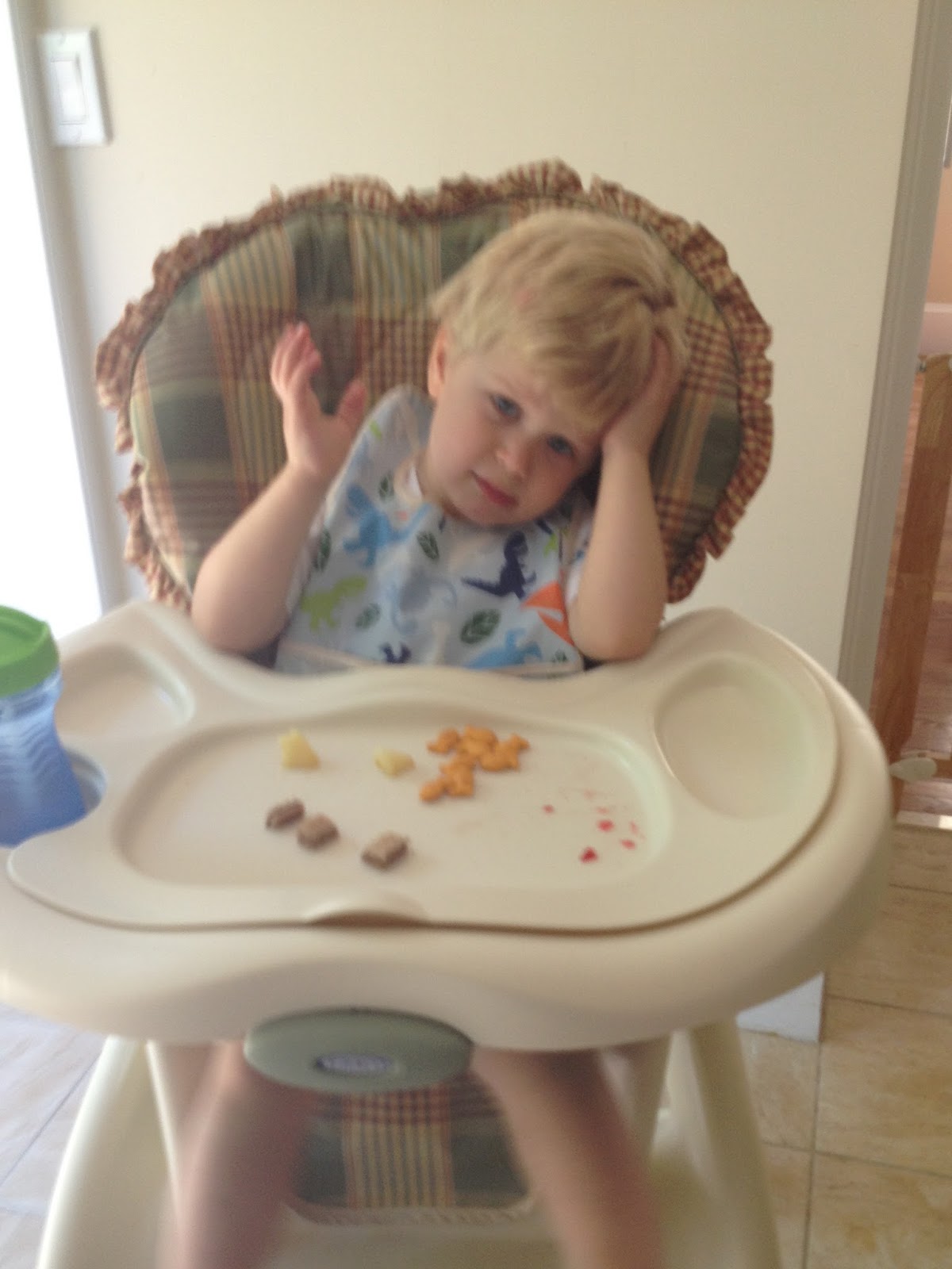 Also at this stage I’d like to report that the terrible two’s are a myth. Alas, they are not. But Ashton’s actually pretty good and the only real tantrums I get are when I won’t give him a cracker. (I don’t know if it’s that he truly LOVES crackers, or if it’s one of his few real words that gets a response and that’s why he uses it all the time, but if I say no, boy, look out. I taped a solid 60 second movie of him crying and stomping at the cabinet where they are kept after I said “We aren’t going to have any crackers right now”. When I stopped recording he ran over to me, cried “No! No! Nooooo!” and pushed me! I would have given anything to get that on video. I tried not to laugh ) He is also super particular about food being whole. If I break off a piece of bagel rather than give him the whole half, or give him a piece of a cookie instead of the entire thing, it doesn’t end well.