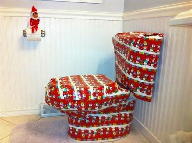 Parents of older kids really have a problem with these elves (usually “damn elves” in that circle) because their kids aren’t just content to find their elf in a new location each morning. They want notes! They want mischief! They want humor and creativity! Right now it’s enough that Ashton just plays hide and seek, but I thought I would share what some of these elves get themselves into (as found across the interwebs). Some are innocent, some not so much.