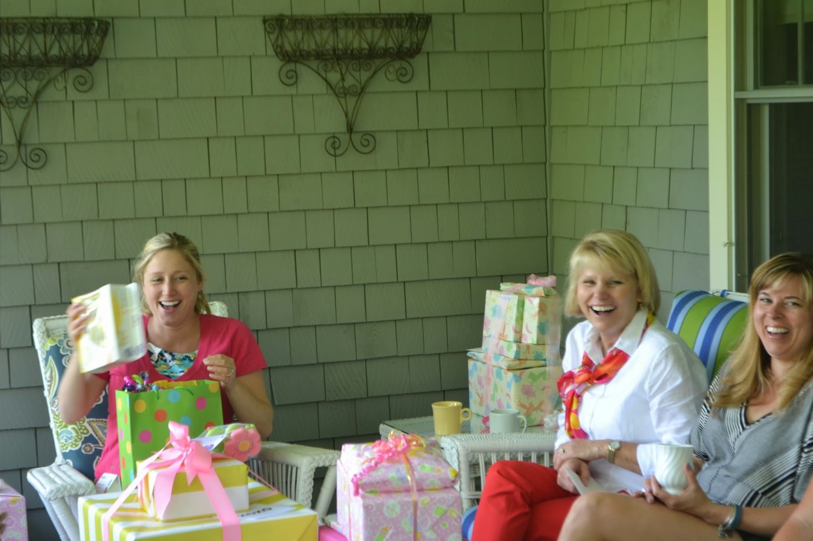 So there we were, about 15 of us on our friend Patti’s back porch. There were mimosas and cupcakes and presents and it was all in all a lovely brunch. Here are some of my favorite photos: