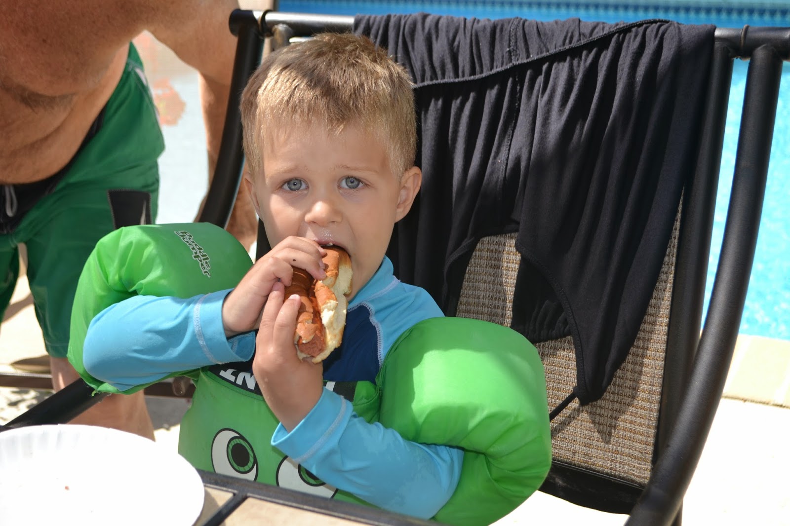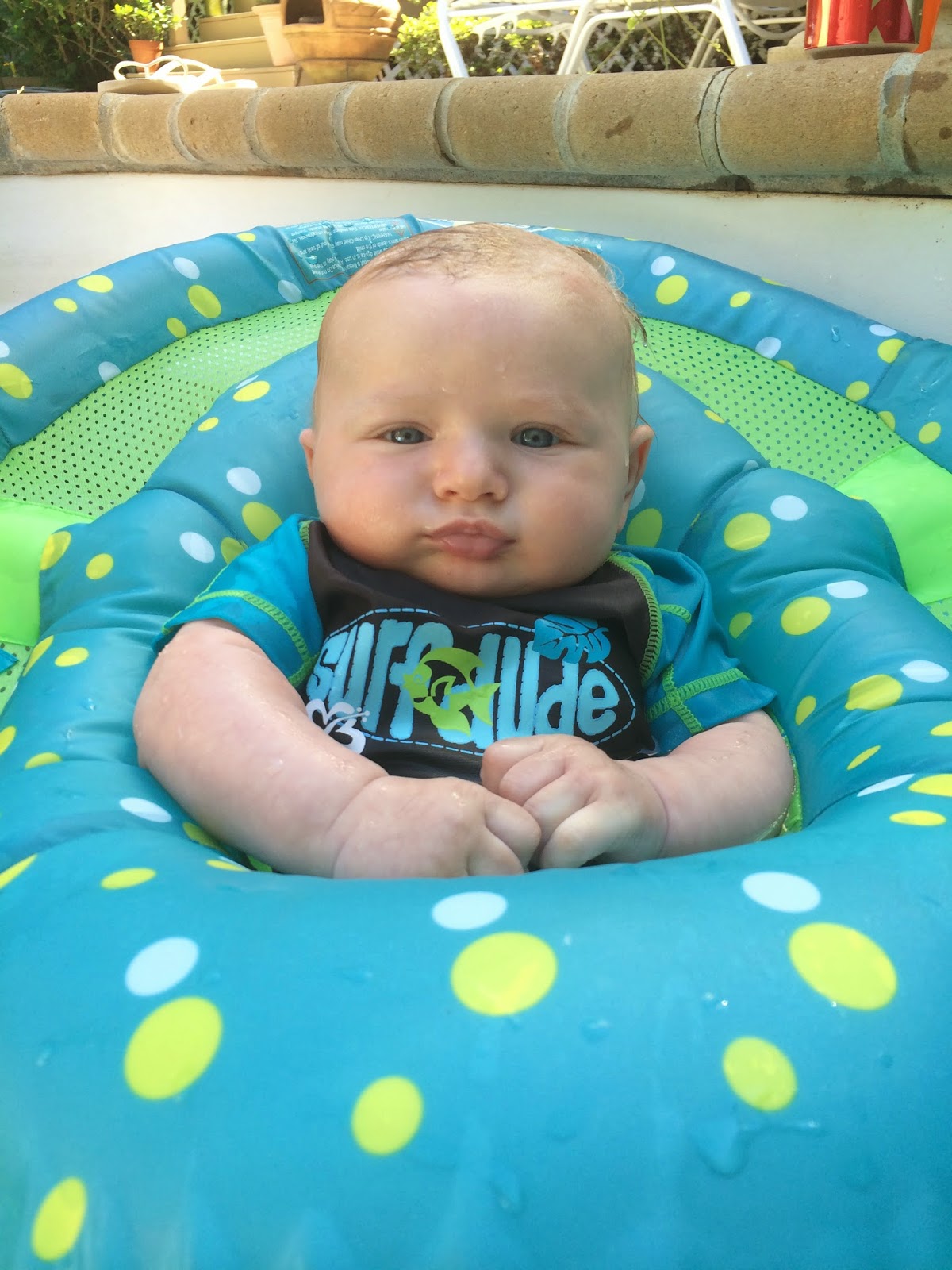 Oh, and we put Alex in the pool for the first time too! In his teeny bathing suit and teeny rash guard.
