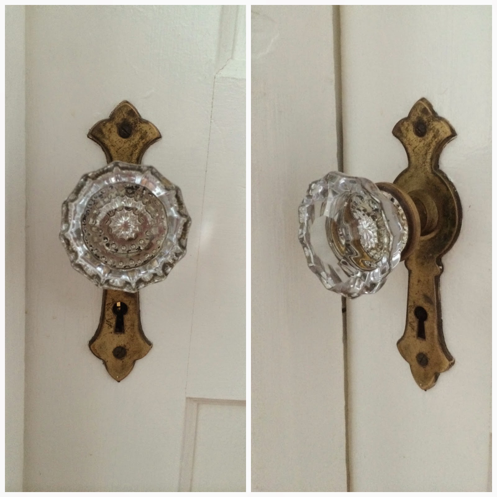 Our house was built sometime around 1920. We have fabulous vintage glass doorknobs that I have always loved and a very antique-y looking decorative panel behind it. What I have not always loved is that they are a tarnished, scuffed gold color. Observe.