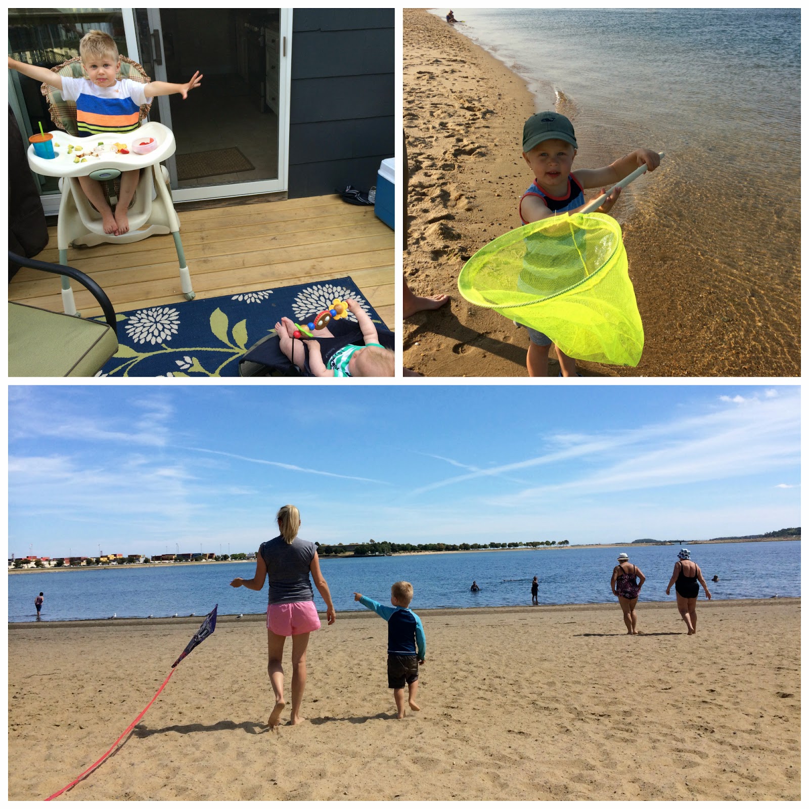 Looking back on all my photos from the past few months, one thing is clear: the boys and I, we had some adventures! If we weren’t on a walk, swimming, or at a farm, we were eating ice cream, at a playground or at the beach. Ashton did so much scootering and biking that he had his helmet on for most of July and August. I was lucky enough to work part-time until the official “back to school” season that we are now in, so things have been crazy with all the change in routine (hence the lack of blog posts!). I finally got a chance to look through my summer pictures and what follows is a “small” glimpse of how much fun we had together: dinners outside, concerts, sticky hands, big bugs, playtime with friends…Ashton wore his Crocs down to almost nothing and was often so dirty that I cheated and gave him a bath while he was in the backyard pool. That’s a good summer right there.
