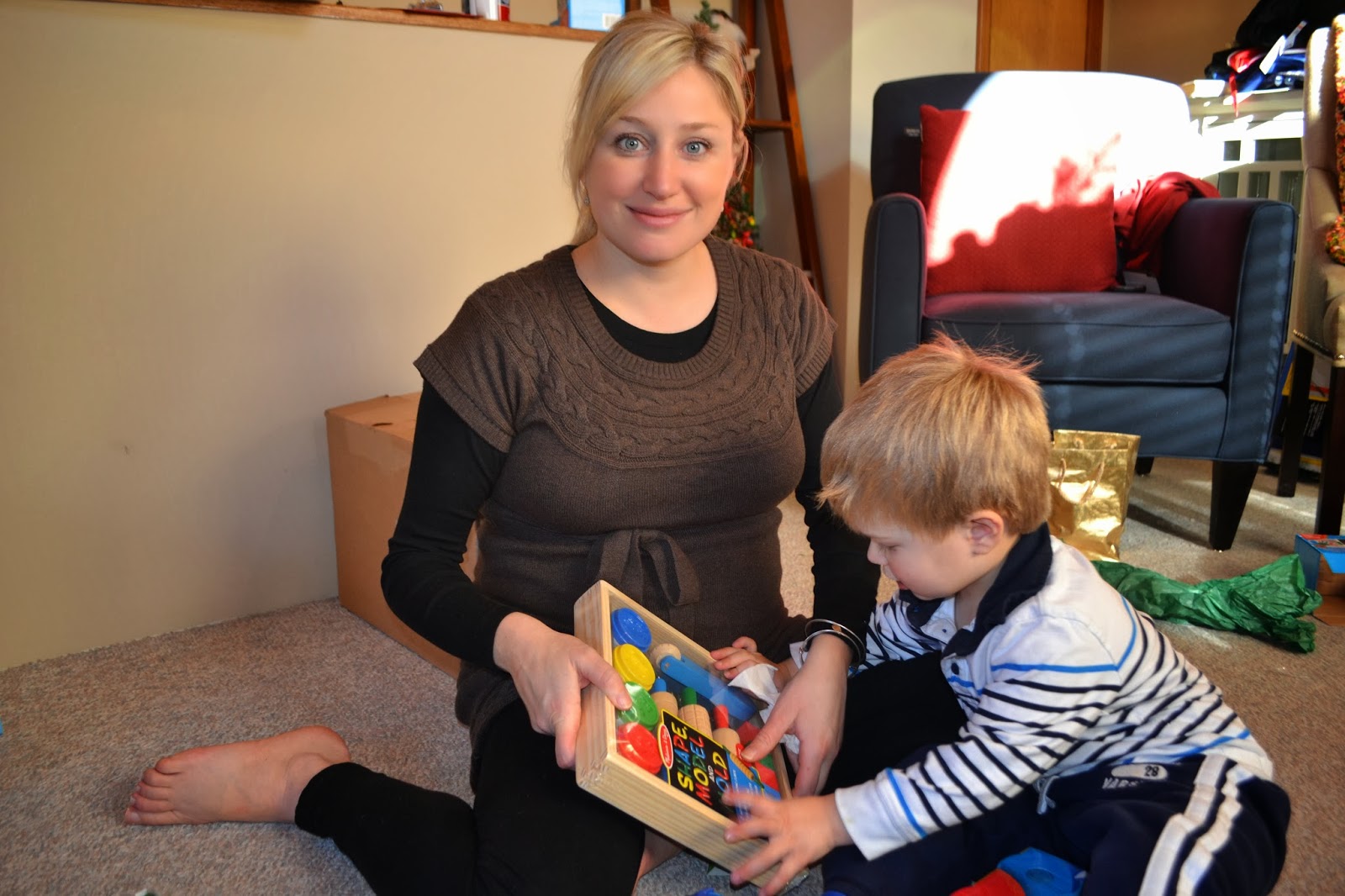 Anyway, besides all that, we spend our time at the indoor playspace, “cook” in Ashton’s new “kitchen”, etc. The days, let me tell you, tick on by. I do need to figure out a way to encourage some independent play because whenever we are home, Ashton really needs to be entertained and it is not only exhausting but I get nothing done. If I try to do the dishes he will pull at my arm or leg and drag me towards his toys saying “Mommy COMMMMMME!” If I don’t go, he whines and cries. Right now it’s easy for me to drop what I’m doing and just go play. How do you tell a 2 year old that you’d rather clean up than open the playdough for the 17th time in two hours? You don’t. But in a couple of months when it’s not the dishes I’m tending to but a newborn, it won’t be that simple. He’s not going to have my full attention whenever he wants it so I best start preparing him. I just don’t know how.