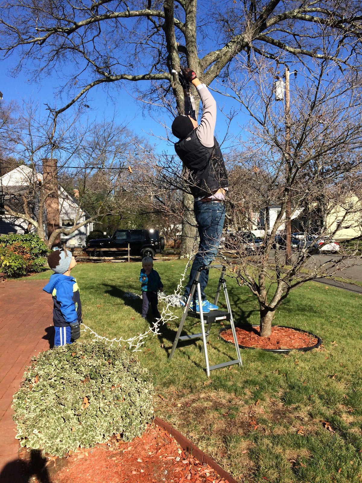The day after Thanksgiving we hit the Children’s Museum in Bridgehampton with Lizzie and Owen and then headed back to MA to get going on Christmas. We took the boys to Lowes to see what they had for decorations. We were contemplating getting an inflatable, then we thought maybe a pair of those sparkly reindeer…we are new to the neighborhood so of course we needed to have an impressive display! So many possibilities.