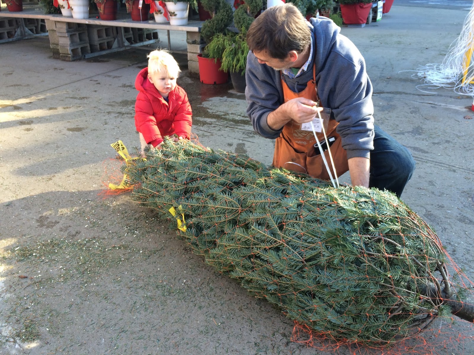 Alex just clung to me and whined to be picked up. The whole time. Until it was time to leave of course, at which point he was suddenly interested in helping to get a tree on the car.