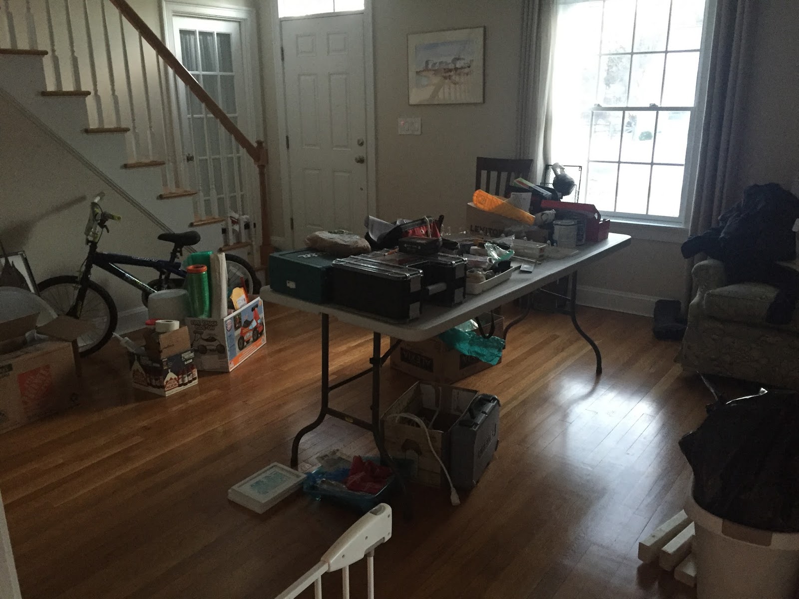 Due to all the junk that we used to hide in the sunroom but now we can’t because it’s becoming a mudroom. See how that works.