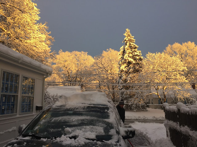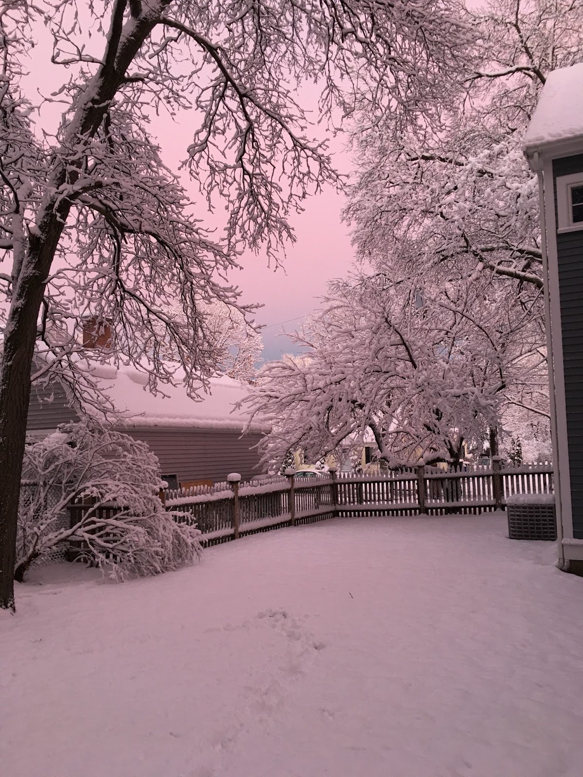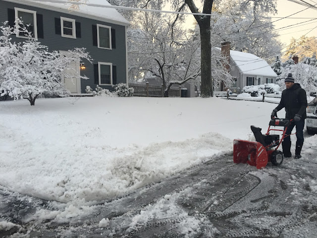So overall, as you can see, things are quite boring. And predictable: we have been getting some snow and people have been getting sick. Last Friday, for some terrible reason, both Bentley and Belmont did not close like the rest of the state, which means I had work and Ashton had school. After I dropped Ashton off, I only stayed at work for a few hours before deciding we really needed to get home. So I picked him up and we basically slid back to Natick, the roads were so dangerous, the snow was super heavy too so there were tons of big branches down. But after the snowstorm passed around 4:30 and right as Jason finished snowblowing, the sun came out and it was simply gorgeous. The light touched the tops of all the trees in our neighborhood and everything was glistening white, it was honestly breathtaking – something I totally could not capture but I tried.