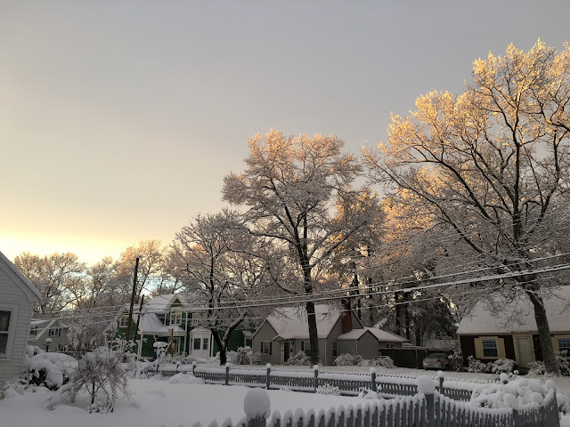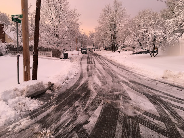 We survived until Monday which was another snowstorm and official snow day. That one was kind of blustery and not so pretty at the end. I didn’t take any pictures.