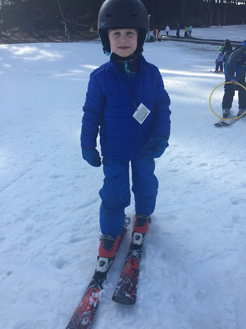 Anyway, Ashton is more than half way to being 5, and so far he can’t ski, bike, or swim. Yikes. (He does ride with training wheels and loves to swim with a float, but on his own – not yet.) We need to get on this stuff. Skiing is a hard one to tackle because the lessons are 45 minutes away and kept getting pushed off (by the mountain, not us) due to school vacation, cold weather, etc. Also Alex really can’t come so it has to work with our schedule. Jason stayed home this time.