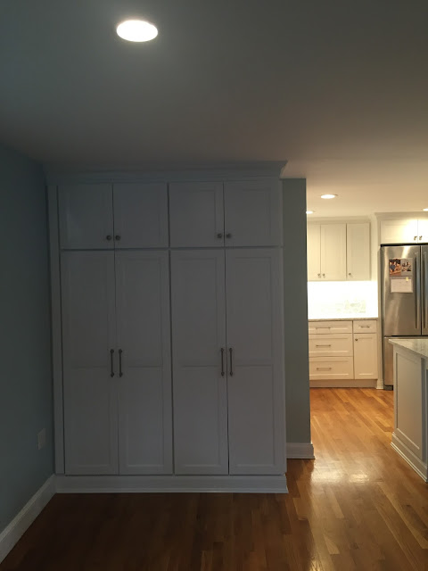 Why, then, did this post take so long? Well, the backsplash tile had an 8-10 week lead time (of course it did! I have a knack for picking the most inconvenient things). When it finally came, the installer told us we actually needed an additional 5 square feet before he would start. We rushed the order, but that was another 3-4 weeks! It finally went in last weekend. Also, there was a lot of additional custom trim work that needed to be done (if anyone lands here because they search the internet for Home Depot/Martha Stewart purestyle cabinets, contact me before using them! I have many-o-pieces of advice on this product).