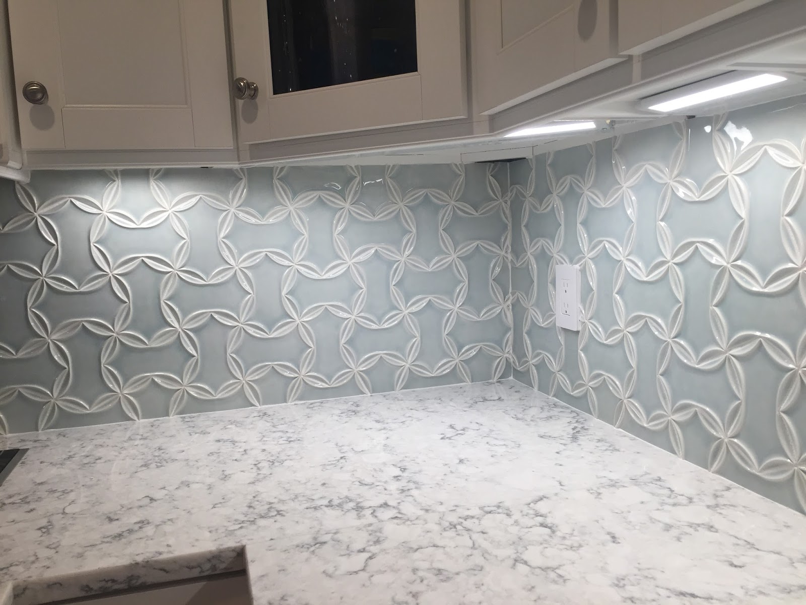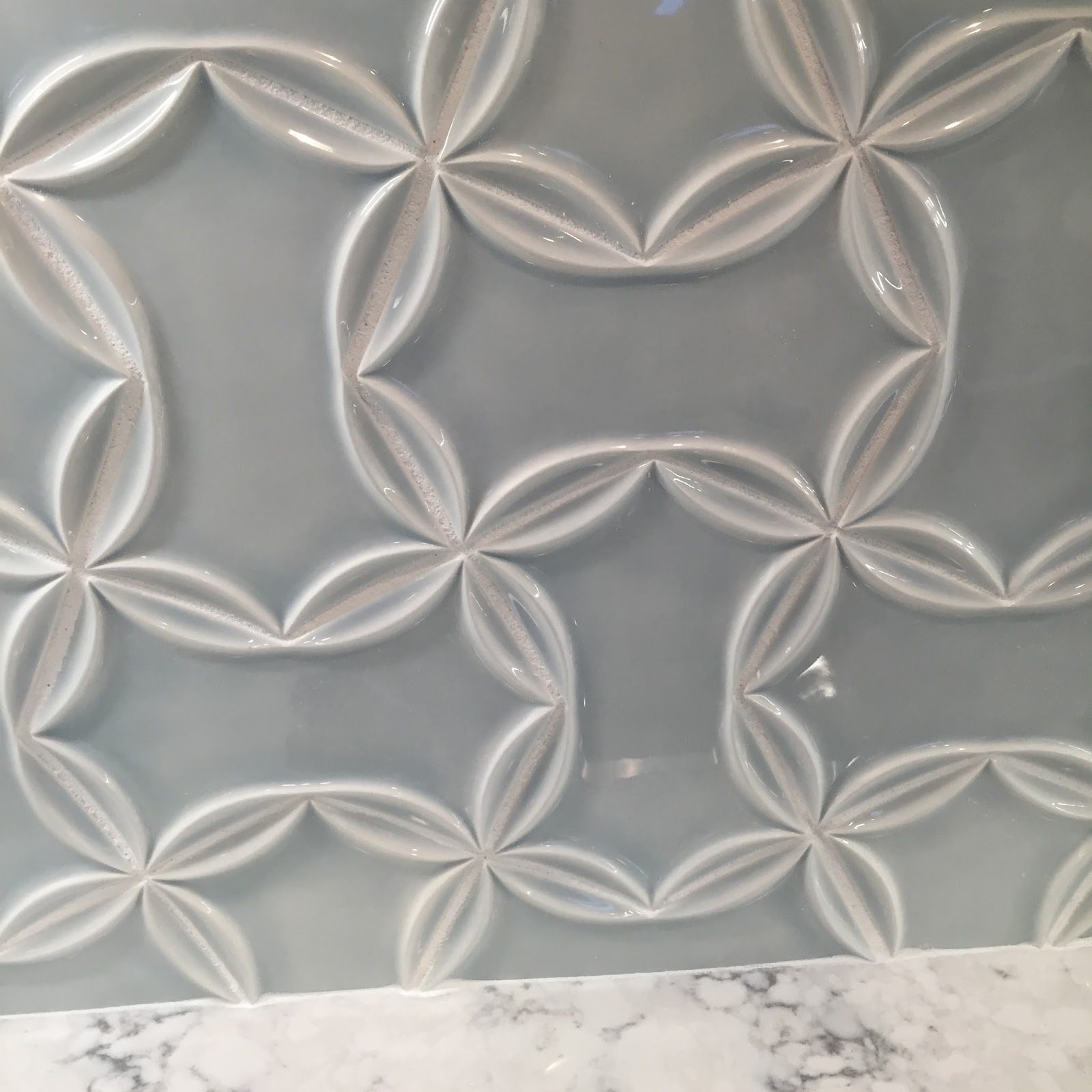 The pictures don’t even do it justice. The flowers are raised so the relief on the tile reflects the light ever so slightly, and the glossy blue is just soooo bee-yoooooo-tee-ful!
