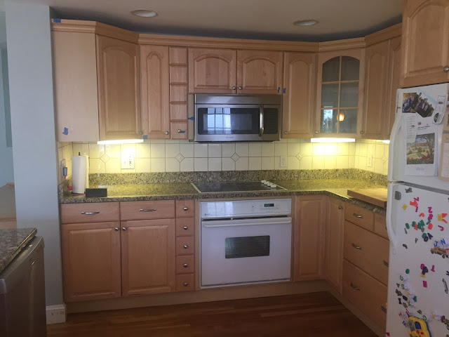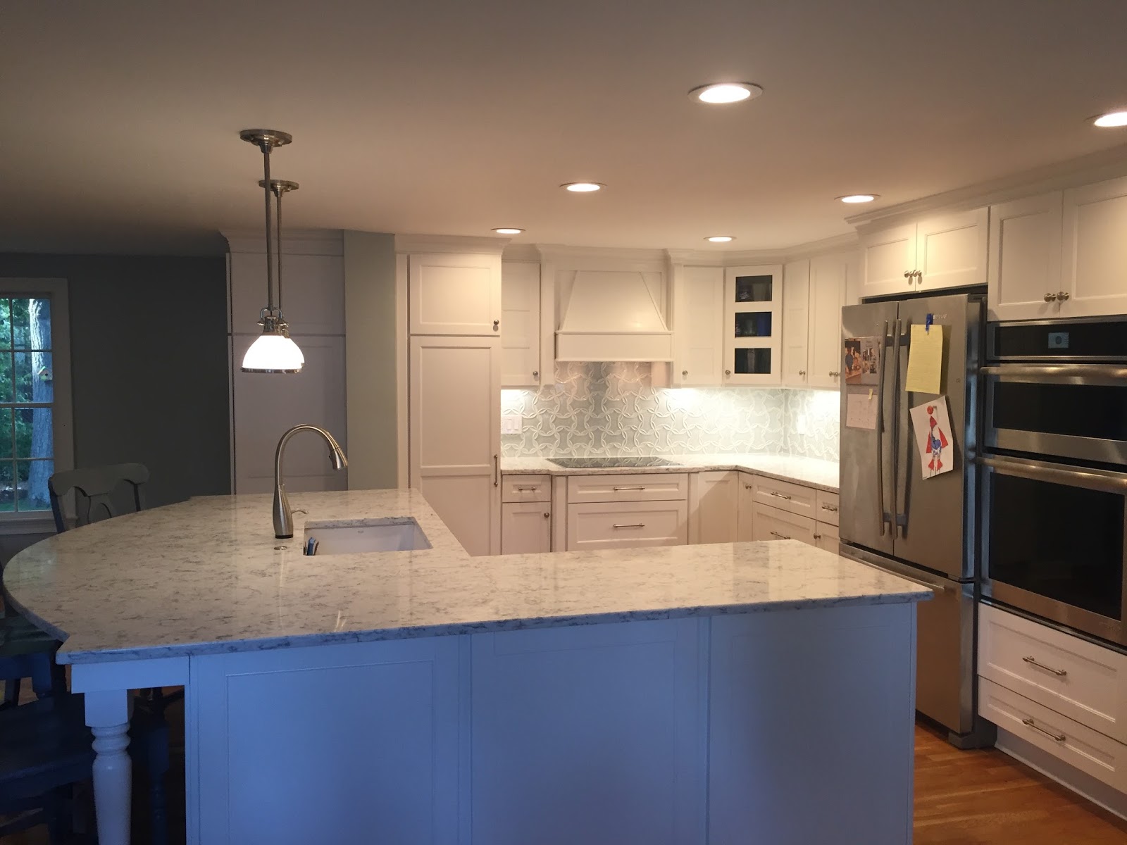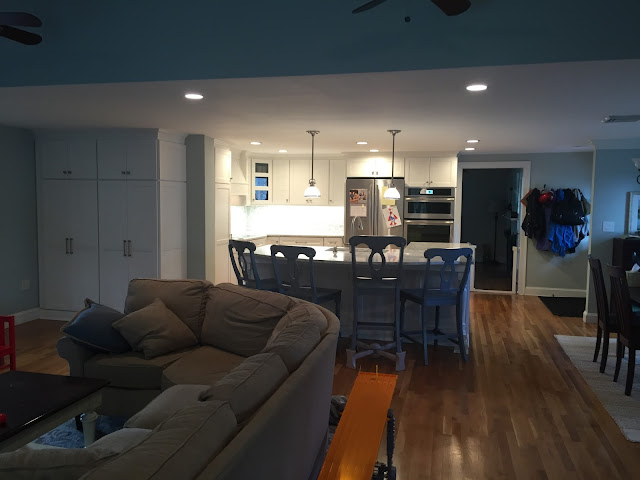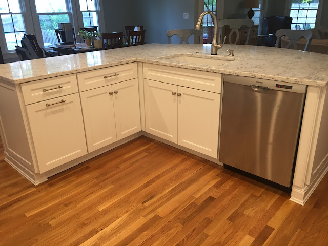 Why, then, did this post take so long? Well, the backsplash tile had an 8-10 week lead time (of course it did! I have a knack for picking the most inconvenient things). When it finally came, the installer told us we actually needed an additional 5 square feet before he would start. We rushed the order, but that was another 3-4 weeks! It finally went in last weekend. Also, there was a lot of additional custom trim work that needed to be done (if anyone lands here because they search the internet for Home Depot/Martha Stewart purestyle cabinets, contact me before using them! I have many-o-pieces of advice on this product).