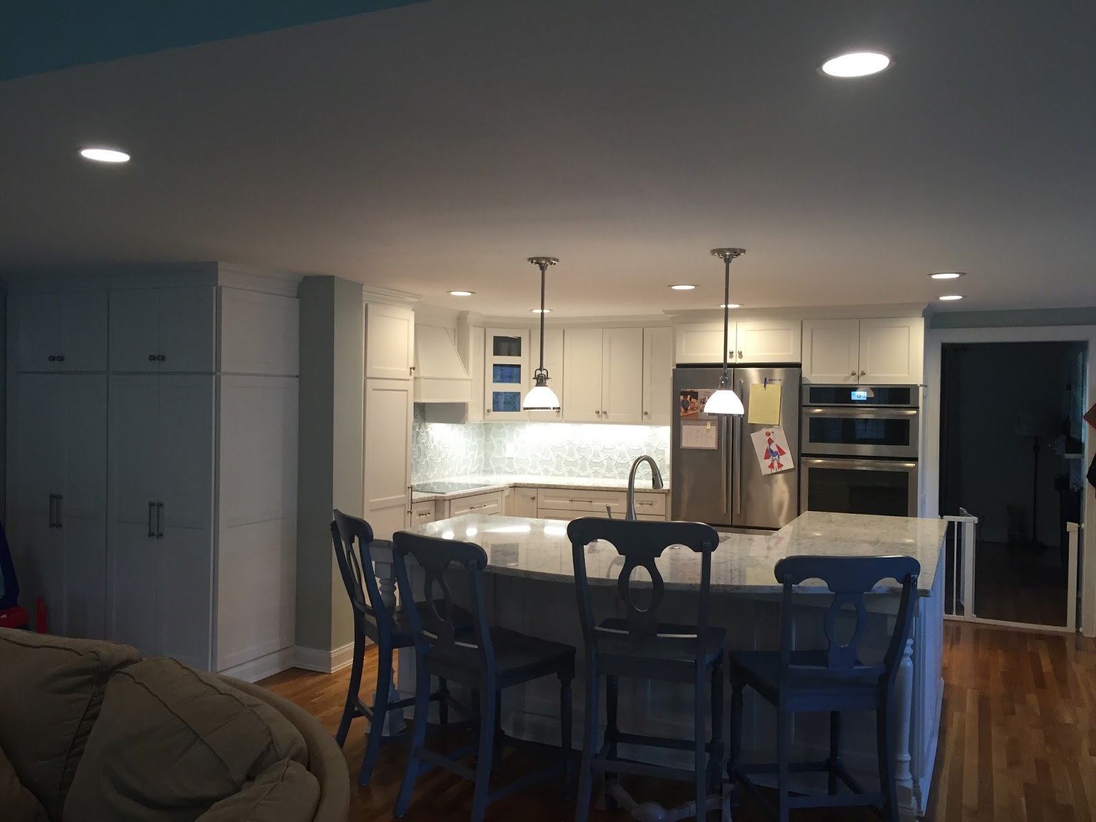 I think I mentioned at some point our cabinets were Martha Stewart- Ox Hill style in Picket Fence. Oh and I chose this line of cabinet hardware, blue counter stools from Target…overall there was a lot to pick! Anyone that has been through a renovation will tell you it is very stressful, for a whole lot of reasons. Looking at the after pictures, it was so worth all of it!