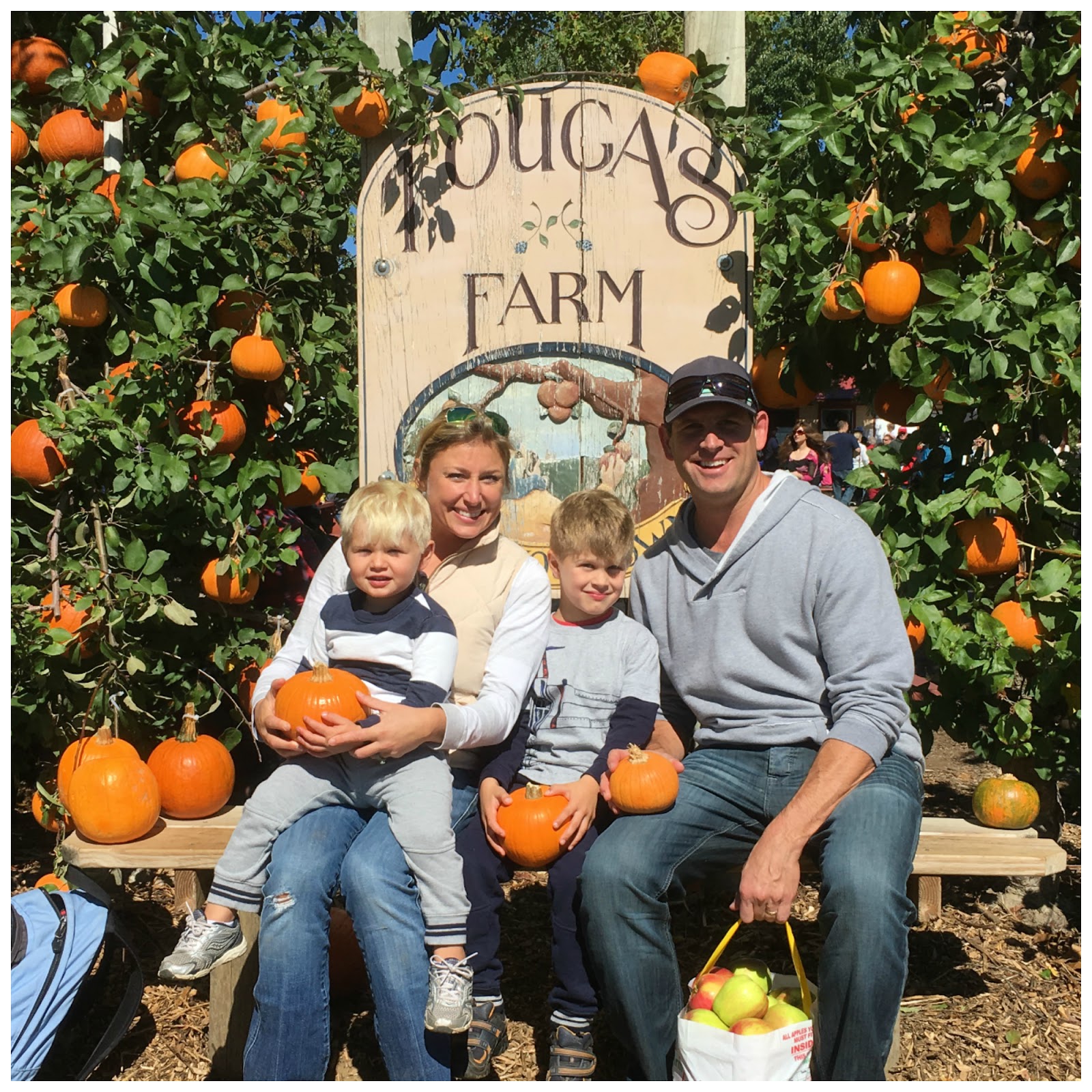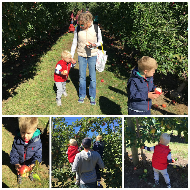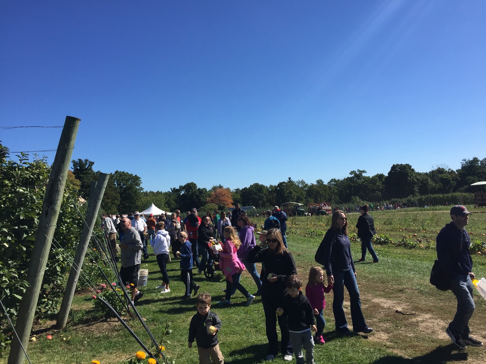 Yesterday was our annual apple picking adventure! We headed to Tougas Family Farm in Northborough and we had great company once we got there: the entire state of Massachusetts. I kid you not – the line to park (just to park!) was almost a mile long. That may not sound like a lot, but when you are snaking up a hill after driving 40 minutes and you know they have just opened at 10 am, how can so many people be ahead of you?? It’s nerve-wracking and I swear I almost made Jason turn around. I have lost the ability to wait since having kids.