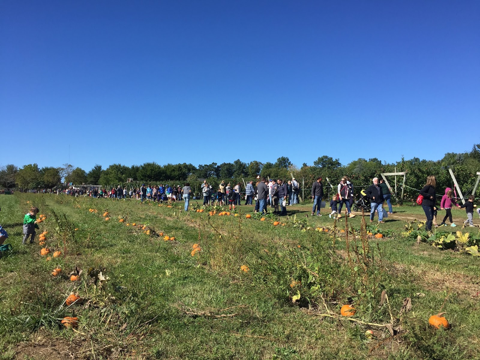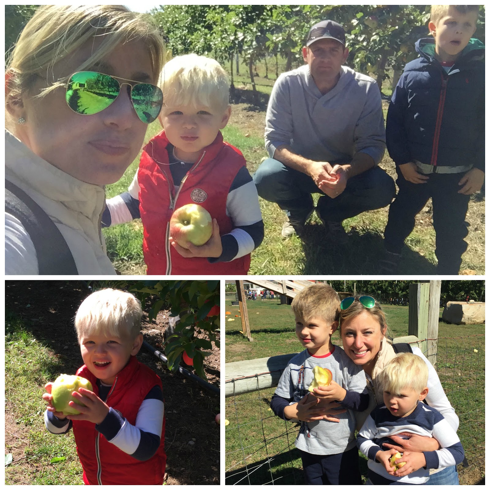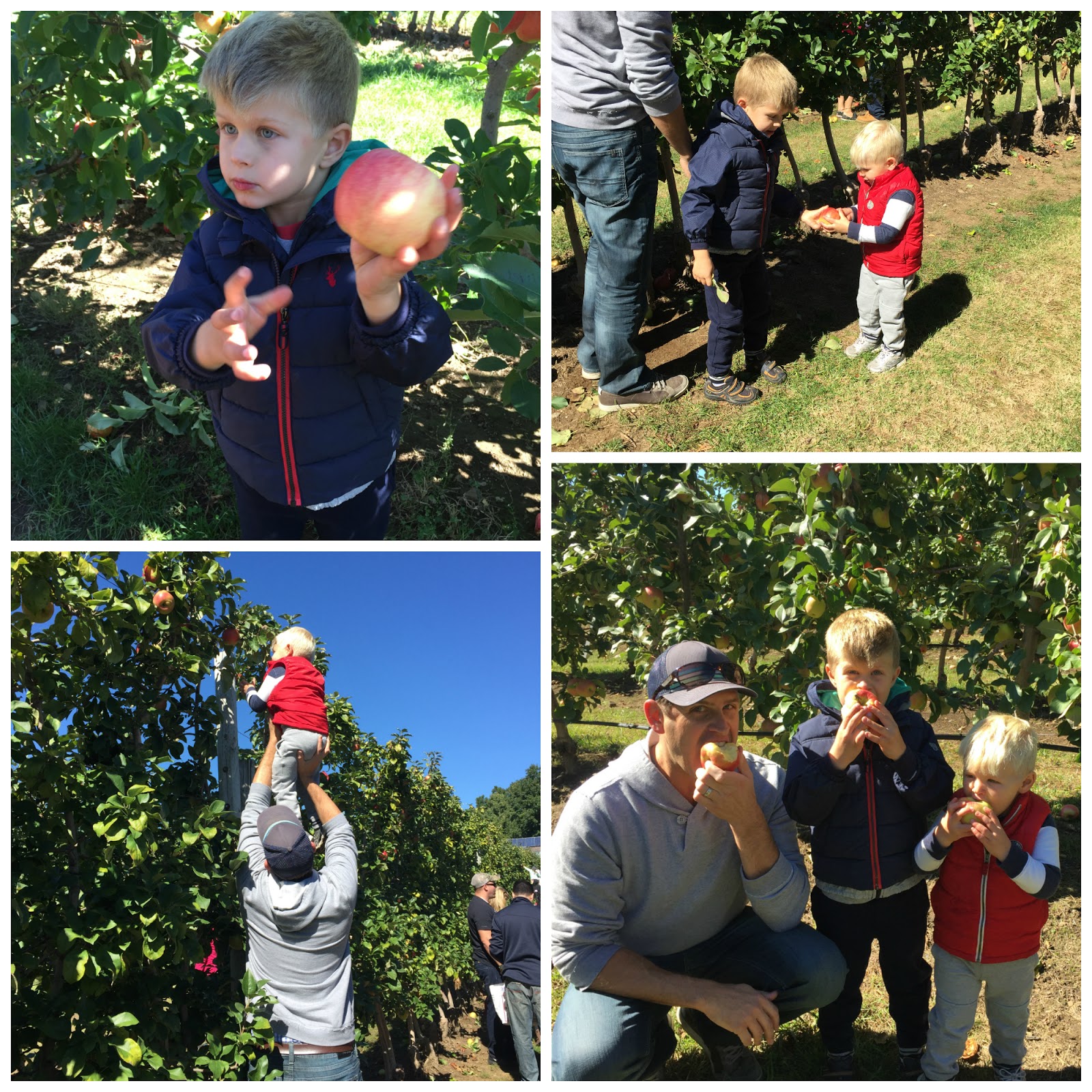Yesterday was our annual apple picking adventure! We headed to Tougas Family Farm in Northborough and we had great company once we got there: the entire state of Massachusetts. I kid you not – the line to park (just to park!) was almost a mile long. That may not sound like a lot, but when you are snaking up a hill after driving 40 minutes and you know they have just opened at 10 am, how can so many people be ahead of you?? It’s nerve-wracking and I swear I almost made Jason turn around. I have lost the ability to wait since having kids.