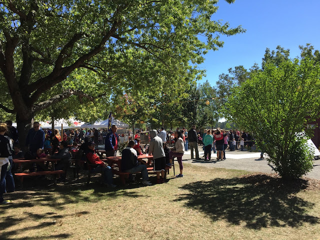 If we could have stood in the most terrifically long lines you’ve ever seen, there would have been cider doughnuts and kettle corn and all sorts of other treats. But we got the heck out of there and the line to get up the hill was even longer on our way out. At some point they must have stopped letting cars in – it was completely full.