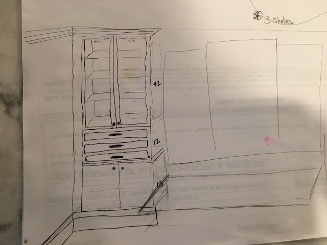 And because the space is shared with the kitchen and living room, keeping the cabinets consistent was probably the safest. We turned to our trusty Martha Stewart catalog, picked out a few options, sat down with our designer at Home Depot and came up with a rough rendering.