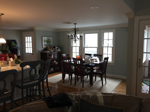 Our house has kind of a strange floorplan, having been converted from a cape to a colonial about 12 years ago. The original living room is now just a pass through from the new main living area to the guest room/bathroom and staircase. It is an empty space still (and we just passed our 1 year mark in the house) and oh how I wish I could borrow from it to make a proper dining room.