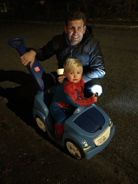 Around 7:15 pm we regrouped at the house, our friends said goodbye and I tried to serve the boys some semblance of dinner (BAHAHAHA, as if they could focus on anything at all). 7:45 pm? Round 2 baby! We hit a different corner of the neighborhood and the decorations were pretty impressive.