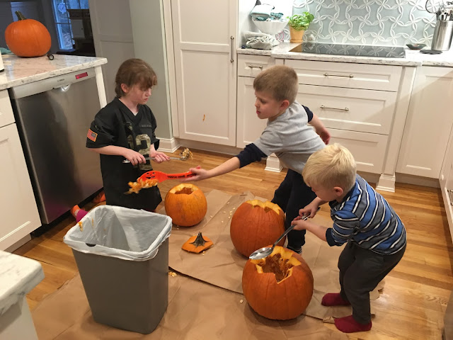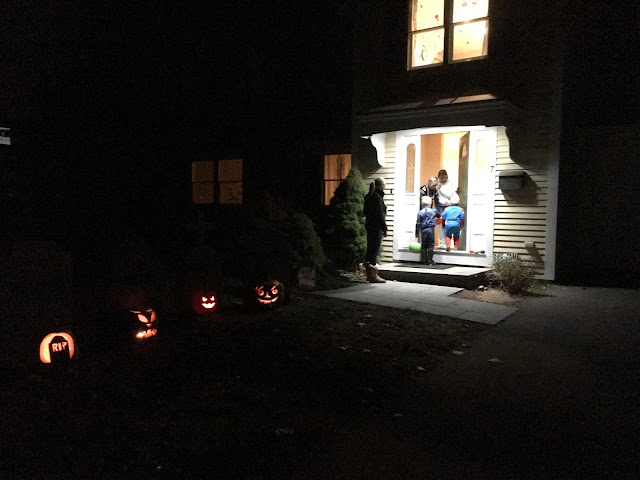 But let’s back up. The Halloween prep this year was ridiculous. A week ago we went to our neighbor’s party. Then last Saturday was the Natick Spooktacular, Sunday was Brae Burn’s kids’ Halloween, Monday was Ashton’s school parade and wait, don’t forget the pumpkins! I’d like to say we went to a pumpkin patch and cut them off the vine like true pioneers, but the truth is they were $4.99 at BJ’s and it was too good of a deal.