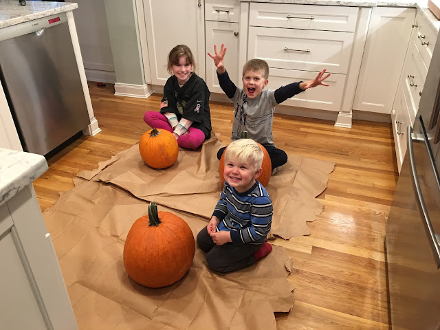 On Sunday afternoon Kayleigh and her mom (our neighbors) came over and we all got to work scooping out the guts and drawing our faces.