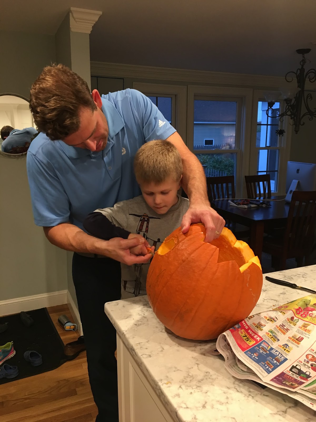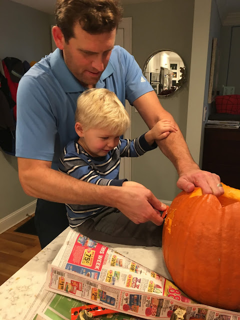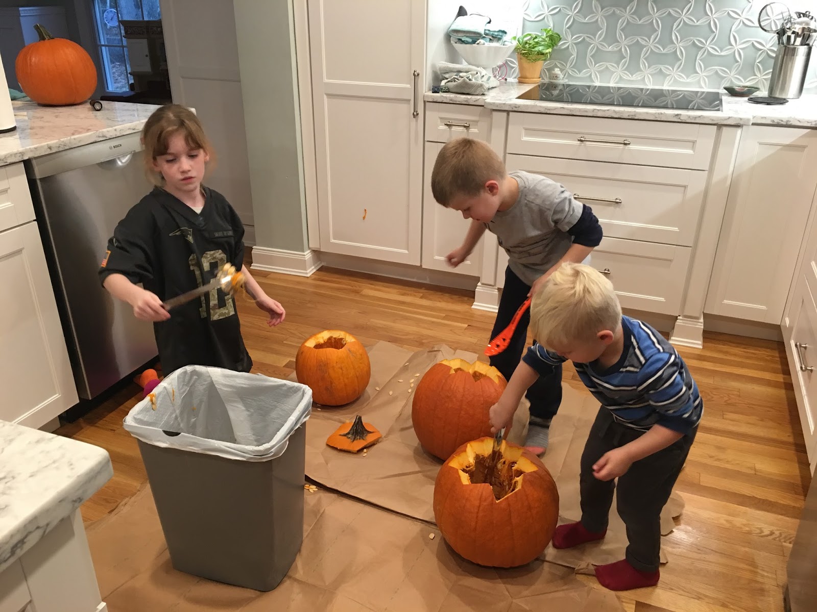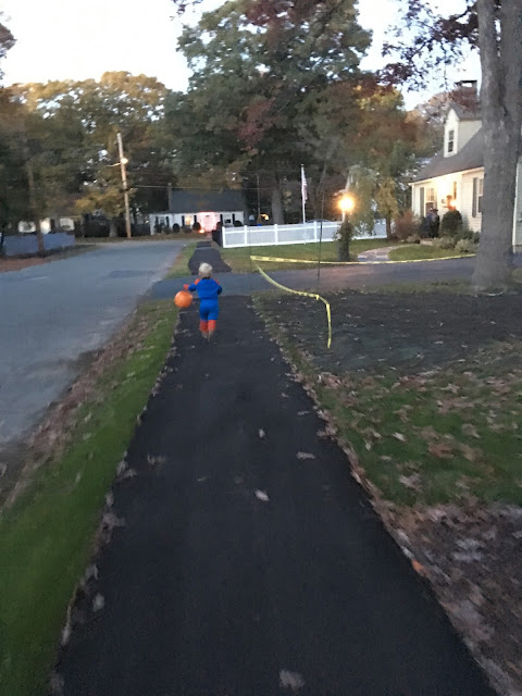 But let’s back up. The Halloween prep this year was ridiculous. A week ago we went to our neighbor’s party. Then last Saturday was the Natick Spooktacular, Sunday was Brae Burn’s kids’ Halloween, Monday was Ashton’s school parade and wait, don’t forget the pumpkins! I’d like to say we went to a pumpkin patch and cut them off the vine like true pioneers, but the truth is they were $4.99 at BJ’s and it was too good of a deal.