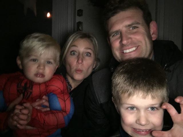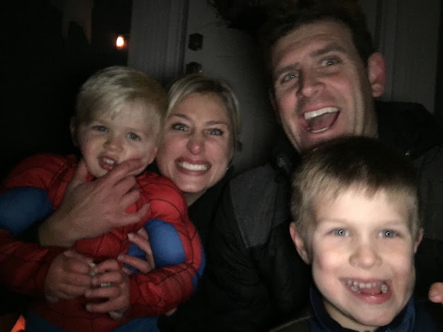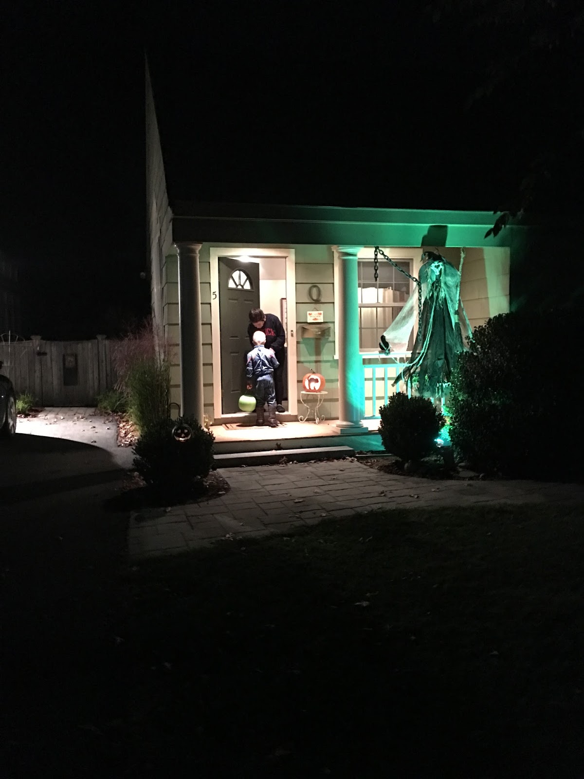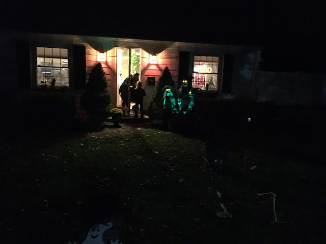 Around 7:15 pm we regrouped at the house, our friends said goodbye and I tried to serve the boys some semblance of dinner (BAHAHAHA, as if they could focus on anything at all). 7:45 pm? Round 2 baby! We hit a different corner of the neighborhood and the decorations were pretty impressive.