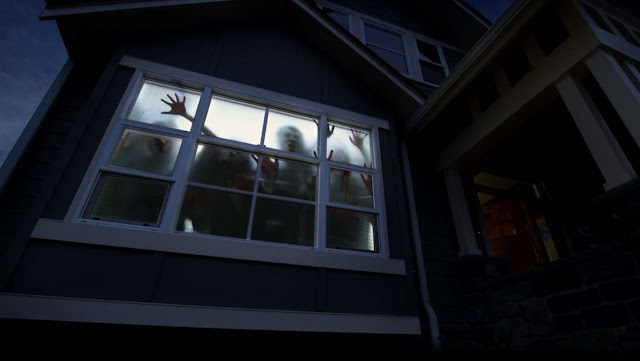 It is FRIGGIN’ CREEPY. For example, if your house is totally blacked out and you put this on one of your windows, people outside will see this: