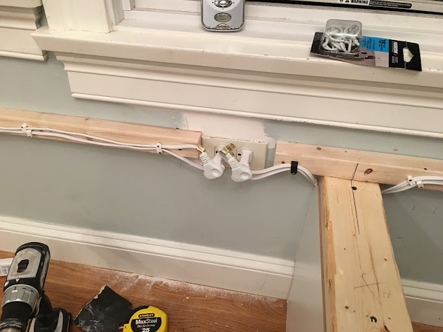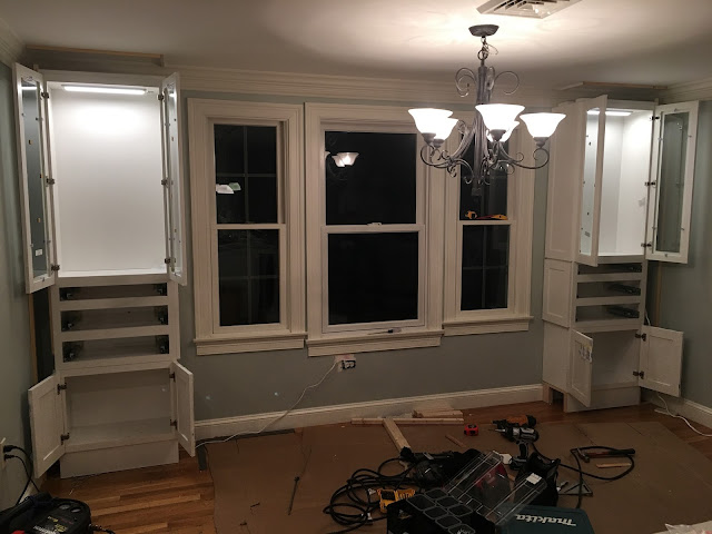 Back to the actual building of everything, of course that goes to Jason. We special ordered the cabinets for the sides but he did the rest! The platforms, the faux walls on each end, the lights, the bench…