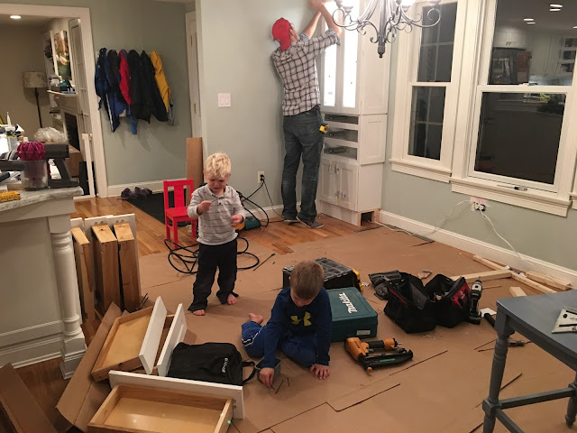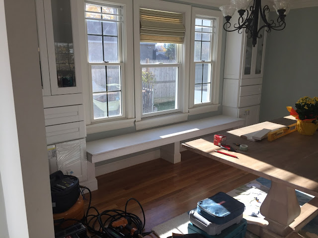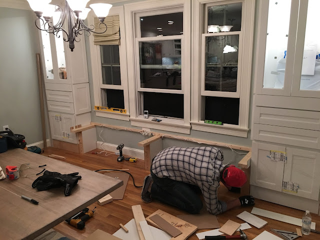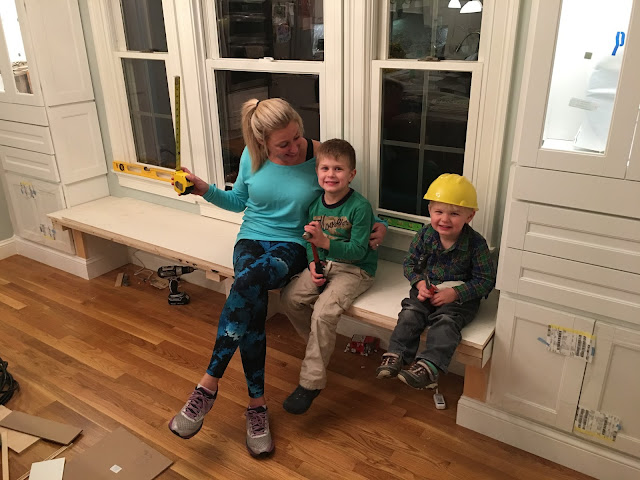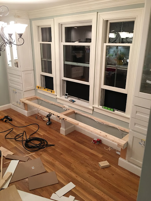 Back to the actual building of everything, of course that goes to Jason. We special ordered the cabinets for the sides but he did the rest! The platforms, the faux walls on each end, the lights, the bench…