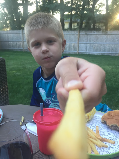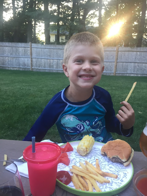This was Ashton’s actual birthday. We did not do much and I had warned him repeatedly that there wouldn’t be any gifts until his party on Sunday (mainly because I was still waiting for Amazon to deliver his presents but also, I wasn’t sure what Jason’s schedule would be so I wanted to keep expectations low). He was shockingly good about it. We went to the pool around 4:30 pm when I got home from work and Jason ended surprising us all there 🙂 So after our swim we went home and had a birthday barbecue, cupcakes, and ran some backyard races. Ashton is actually fast and it surprised me that I had to put some effort into beating him lol. Here are some minimal pictures from August 3.