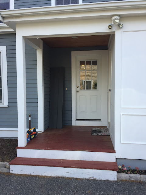 This project is pretty self explanatory! We have a heavily used side entrance to our house (where both the mudroom and kitchen exterior doors are) and the deck, well…it was red and also the wood was not in the best shape. The top step board wiggled when you stepped on it and a lot of the other planks were cracked with chipping paint. Not the best look.