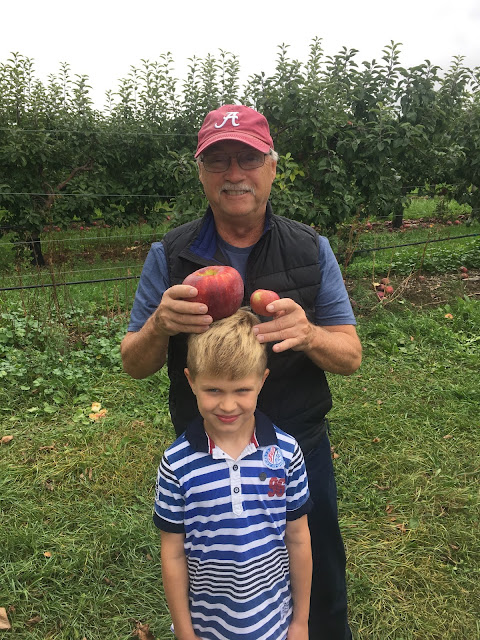 The weather has been gorgeous and warm, the boys are doing great at their schools and I’m hoping my wild west book fair goes off without a hitch next week. But first, Grandma and Grandpa came for a quick visit last weekend we went out apple picking, here are a few pictures! I would say I found the biggest one 😀
