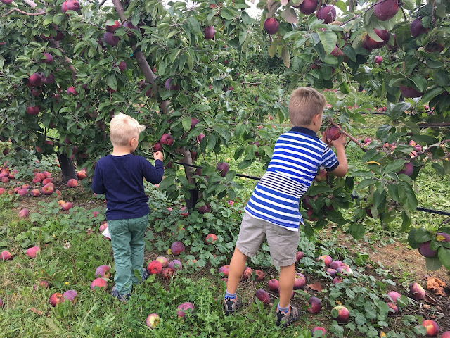 The weather has been gorgeous and warm, the boys are doing great at their schools and I’m hoping my wild west book fair goes off without a hitch next week. But first, Grandma and Grandpa came for a quick visit last weekend we went out apple picking, here are a few pictures! I would say I found the biggest one 😀