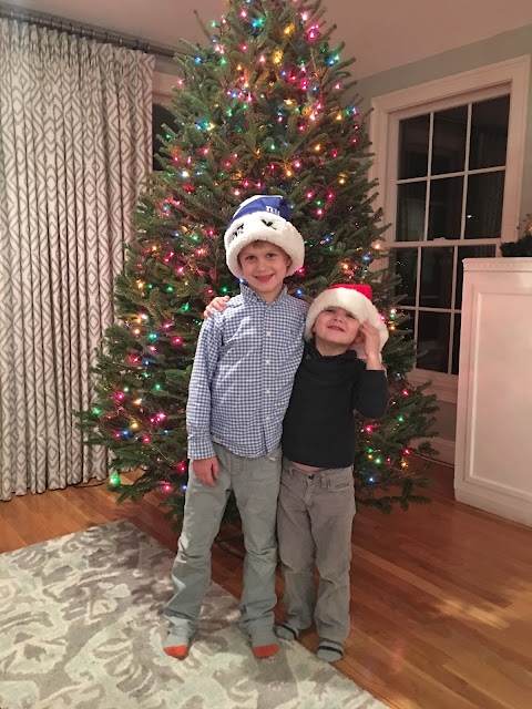Pete (our elf) is always a mainstay. He flies down December 1 and spends a few weeks whipping the boys into shape. As the month goes on, the law of diminishing returns does take some effect, but overall Pete is quite beloved. The boys JUMP out of bed in the morning to be the first to find him. You can see it in Alex’s face as they said goodbye to him on Christmas Eve: