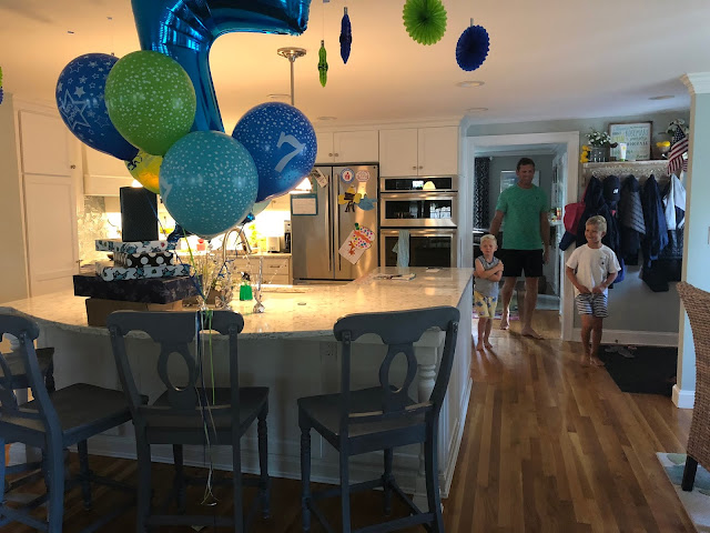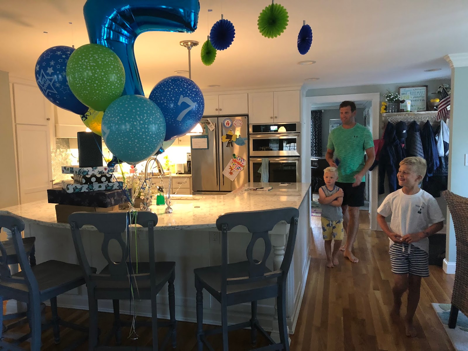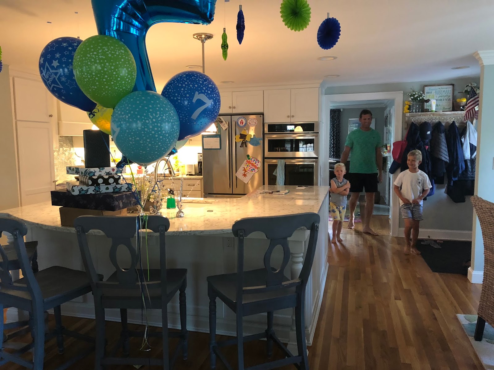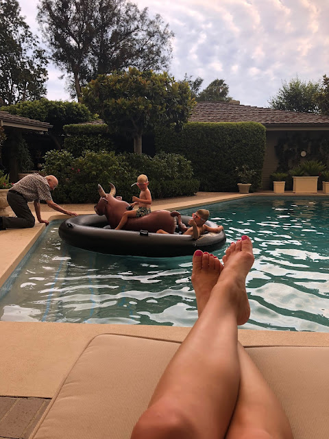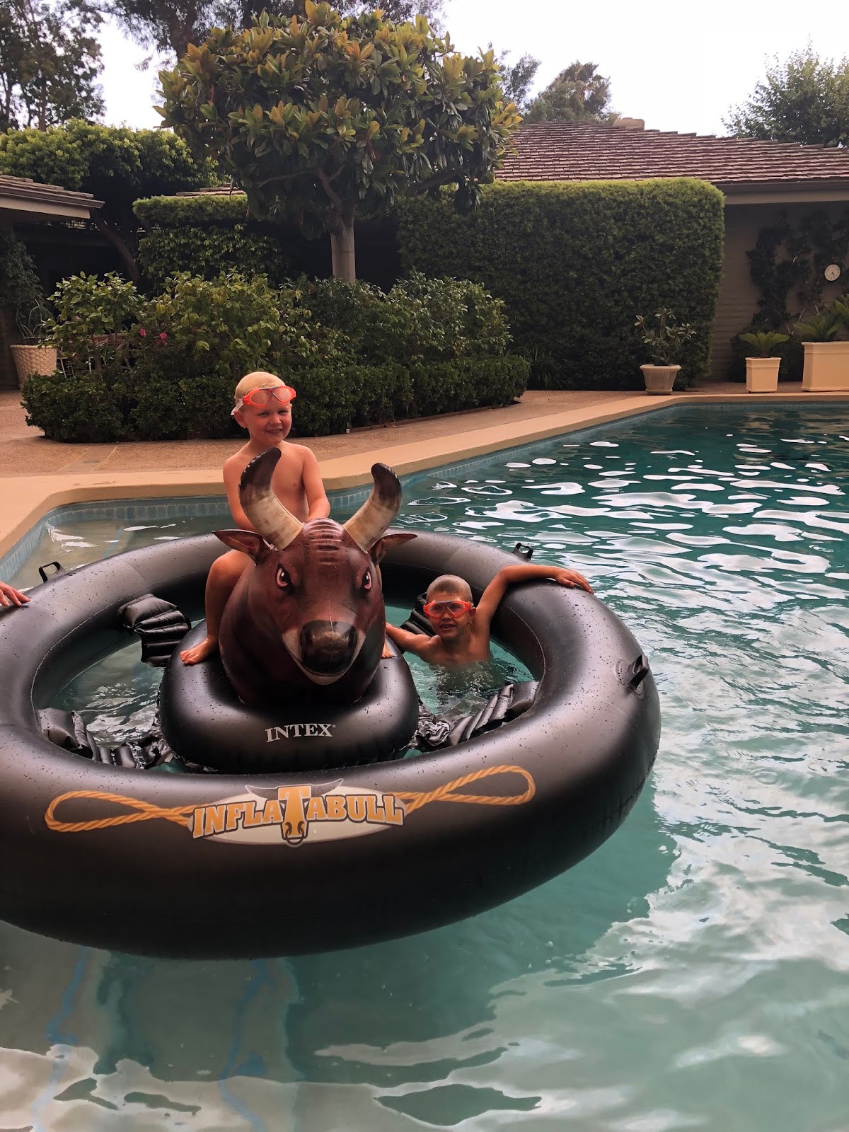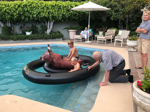 The morning of the flight out, Thursday, was very hairy. If you want to know the whole story, I have posted it at the bottom. We got to Papa and GG’s around 4 pm on Thursday and a giant bull raft awaited the boys in the pool (thanks Papa!). That was basically the rest of the day, as you can imagine. What else would we need? Lol