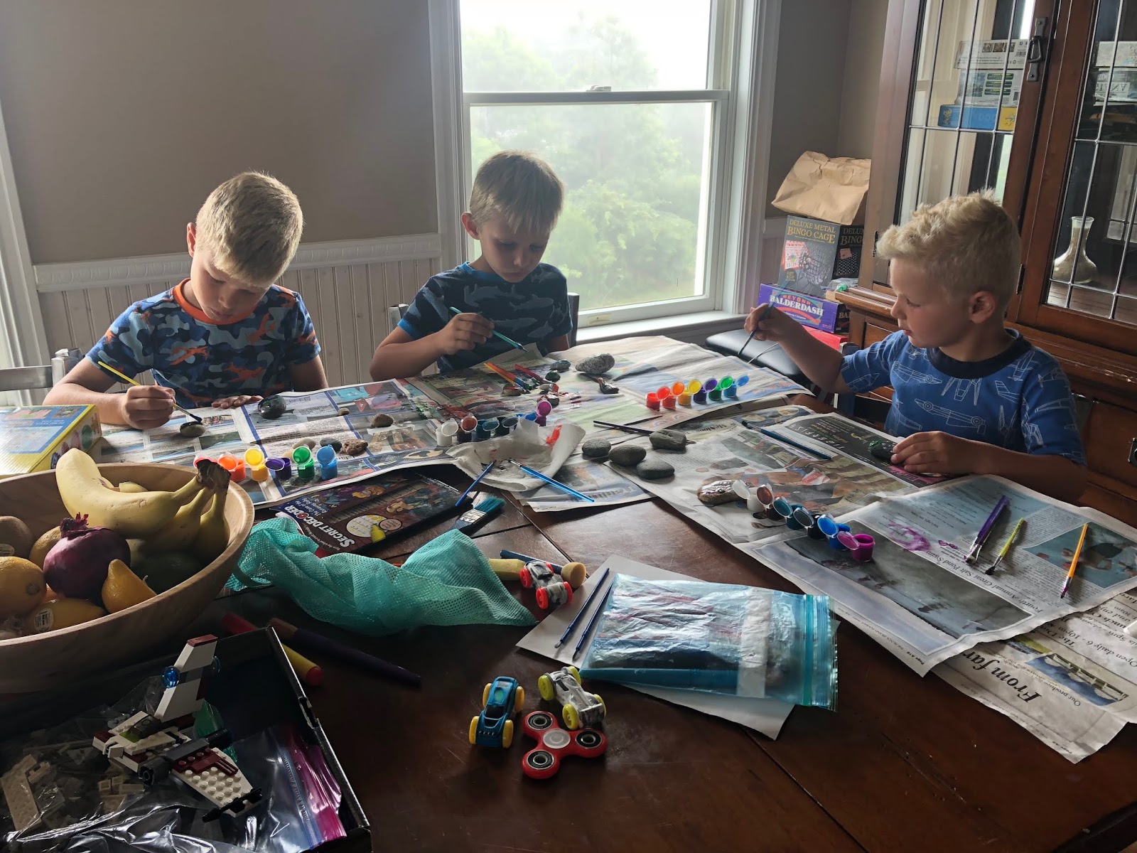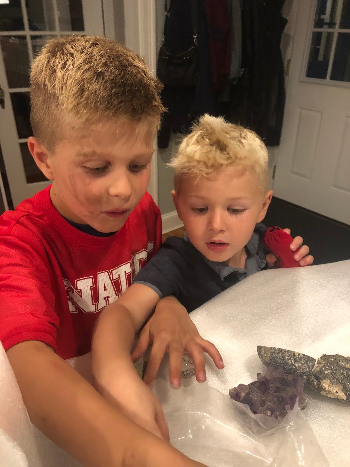 Ashton made a cool necklace and Alex found a heart shaped rock.
