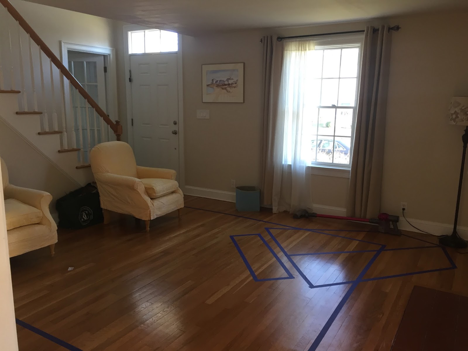 We have a double height entryway that has always been begging for some fancying up. Right after New Year’s we had a very large snowstorm coming and a snow day had been officially declared. Around 9 am, the first heavy flakes were starting to fall. In a panic, foreseeing we would all be stuck in the house for HOURS, and with nothing to do, I said: