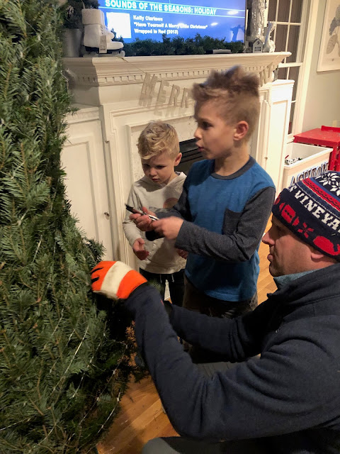 I also did garland on the stair banister but waaah I have no final picture. Just one of me working on it (in my holiday plaid shirt of course!)