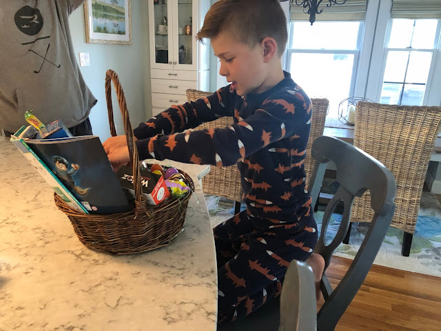 We managed to pull together some baskets and while we knew that Sunday mass was being live-streamed, we didn’t watch it Instead we did the usual egg hunt and then we went for a family hike to Pegan Hill in South Natick. It wasn’t a long one but it did get VERY muddy and it was quite strange to pass people and have them wearing masks and pull over 6 feet. One of the things I’ve noticed about social distancing is that people have kind of stopped smiling too. Just because you have to maintain personal space doesn’t mean you can’t look at people and greet them right? It happens everywhere now! Even people walking by our house. So weird. Smiling and waving doesn’t make the virus more contagious. But anyway as you’ll see the hike was very muddy and we eventually tromped through it all. Ashton was very excited about it and kept saying it was “an Easter adventure and a membory [sic] that I’ll never forget!”