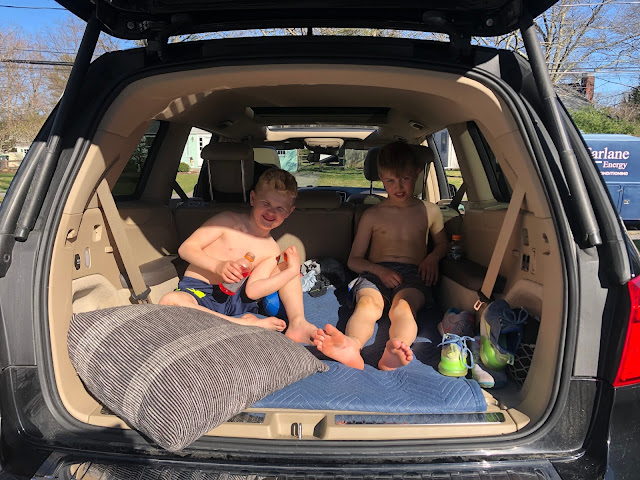 Once the struggle was defined in those terms, I learned to let go pretty quickly because you can’t do those 4 things at one time. No one can, and no one is asking you to except yourself. So there was that. And I’ll also admit, there was an underlying ease in the fact that we were not supposed to be anywhere, see anyone, do anything. We were home, and then home, and then home some more. And so was everyone else. There was no fear of missing out, no “everyone else has plans, is out doing XYZ, being productive/having fun/whatever.” Pretty much everyone we knew took the stay at home order very seriously, so there were no hard feelings about not seeing neighbors or friends. We were all in the same boat. Or actually, all in separate boats on the same ocean. ?. Whatever. It looked like this.