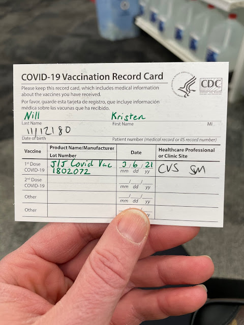 I couldn’t believe it. I woke Jason up. I was elated and actually had trouble going back to sleep. I got an appointment! And for the Johnson & Johnson vaccine which is just one dose!