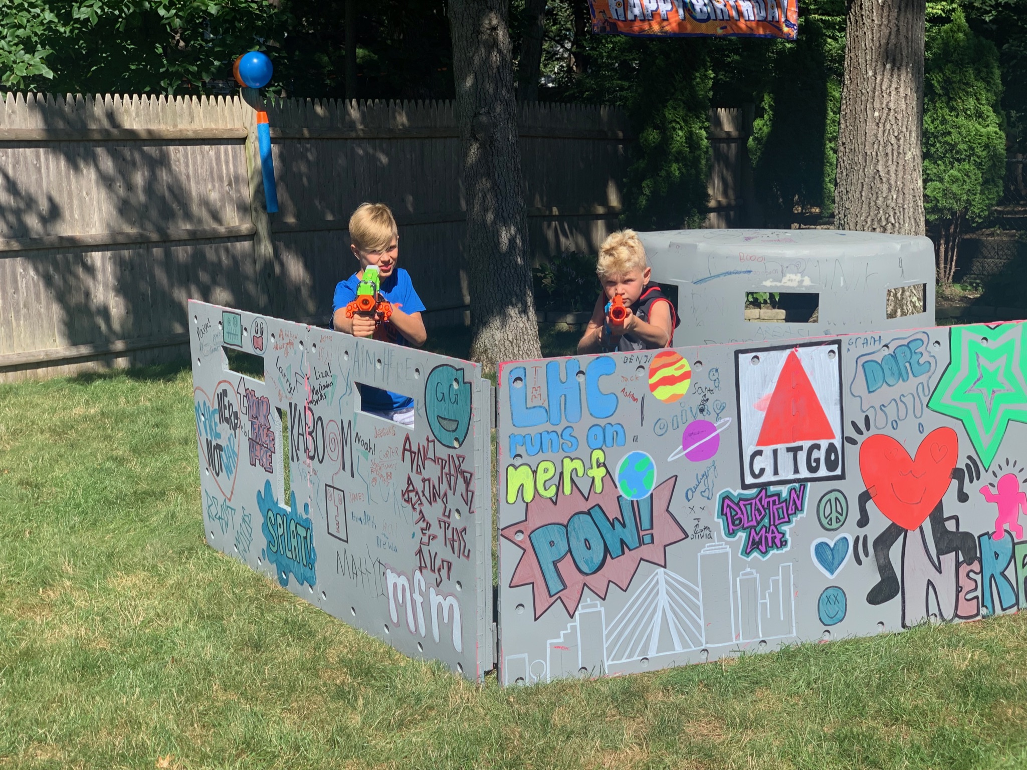 So here’s what we did. The gym up the street has an indoor turf field and they do an event every so often called “nerf on the terf” which is just kids showing up and firing at each other in a controlled environment. Knowing that we didn’t want to be inside, I asked if I could borrow their “infrastructure” and for 50 bucks, they said sure.